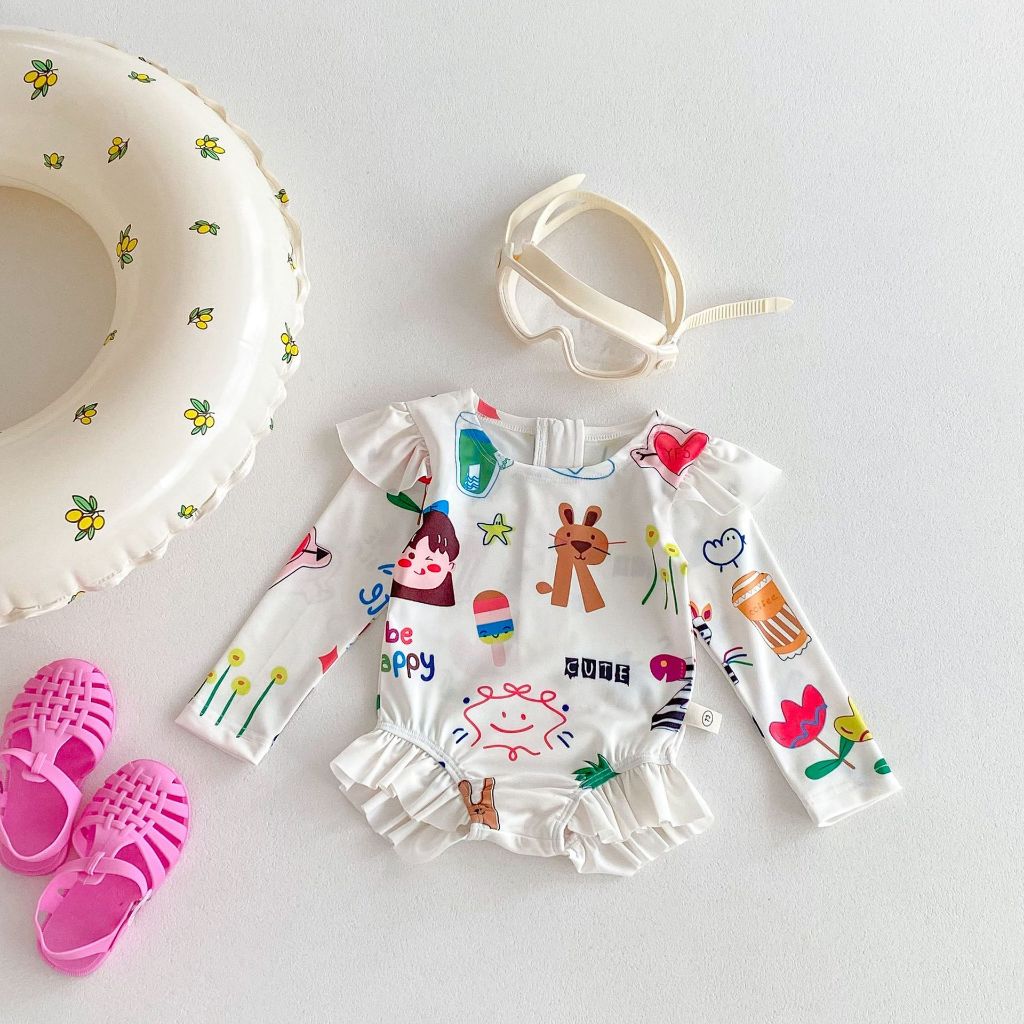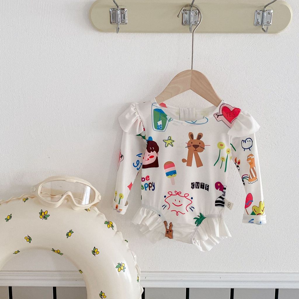NT Baby - 091 (สินค้าพร้อมส่ง) ชุดว่ายน้ำเด็กแขนยาวลายการ์ตูนสุดคิวท์! สไตล์เกาหลีผ้านิ่มบางเบาใส่สบาย