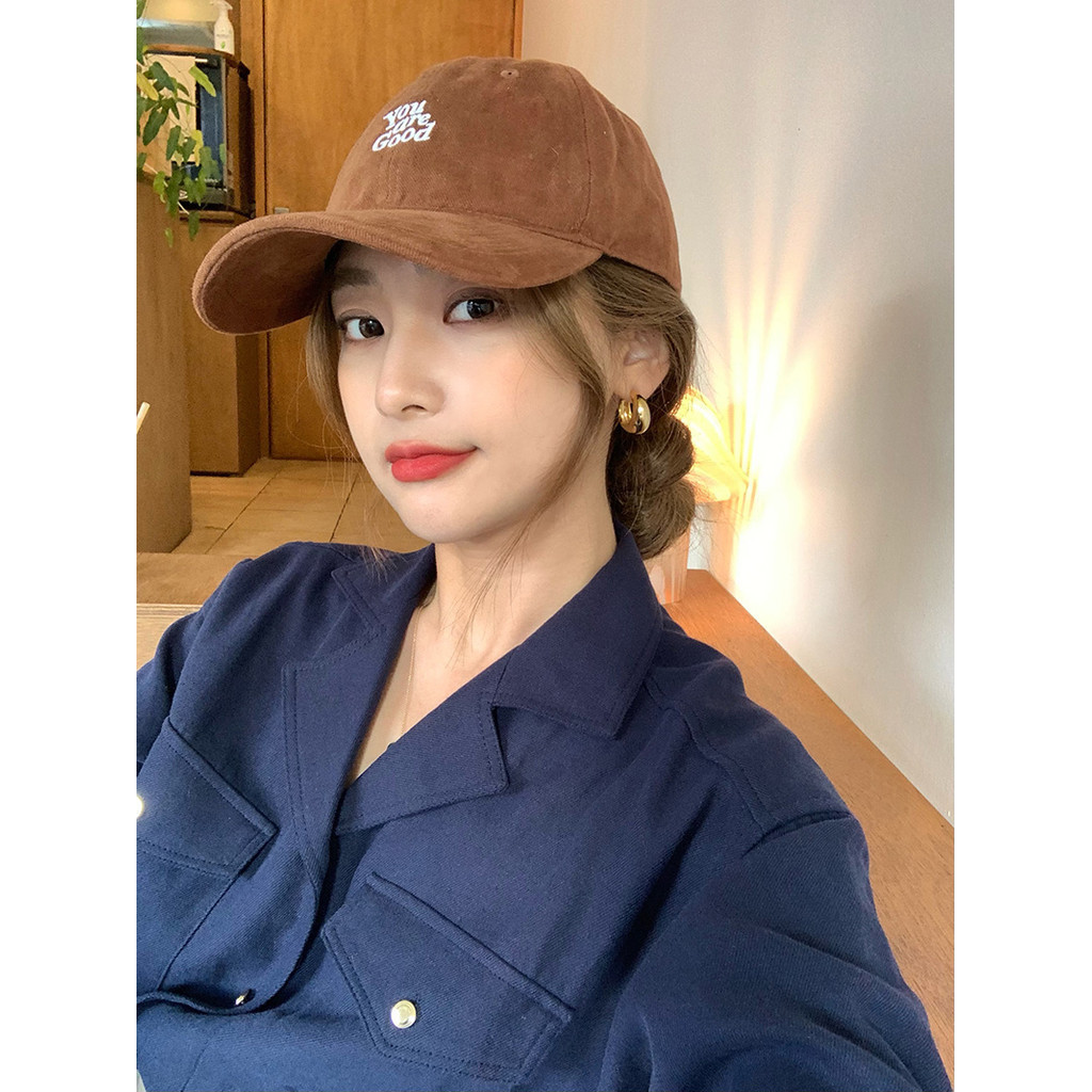 หมวกเบสบอลผ้าฝ้ายปักลายภาษาอังกฤษสไตล์เกาหลีสําหรับผู้หญิง