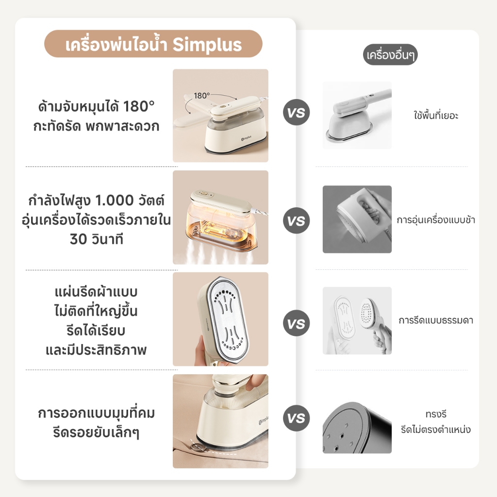 Simplus เตารีดไฟฟ้า เตารีด เตารีดไอน้ำ เตารีดพกพา เตารีดแห้ง เตารีดไอน้ํา 180° หมุนได้จับขนาดกะทัดรัดแบบพกพา Steam Iron GTJH022