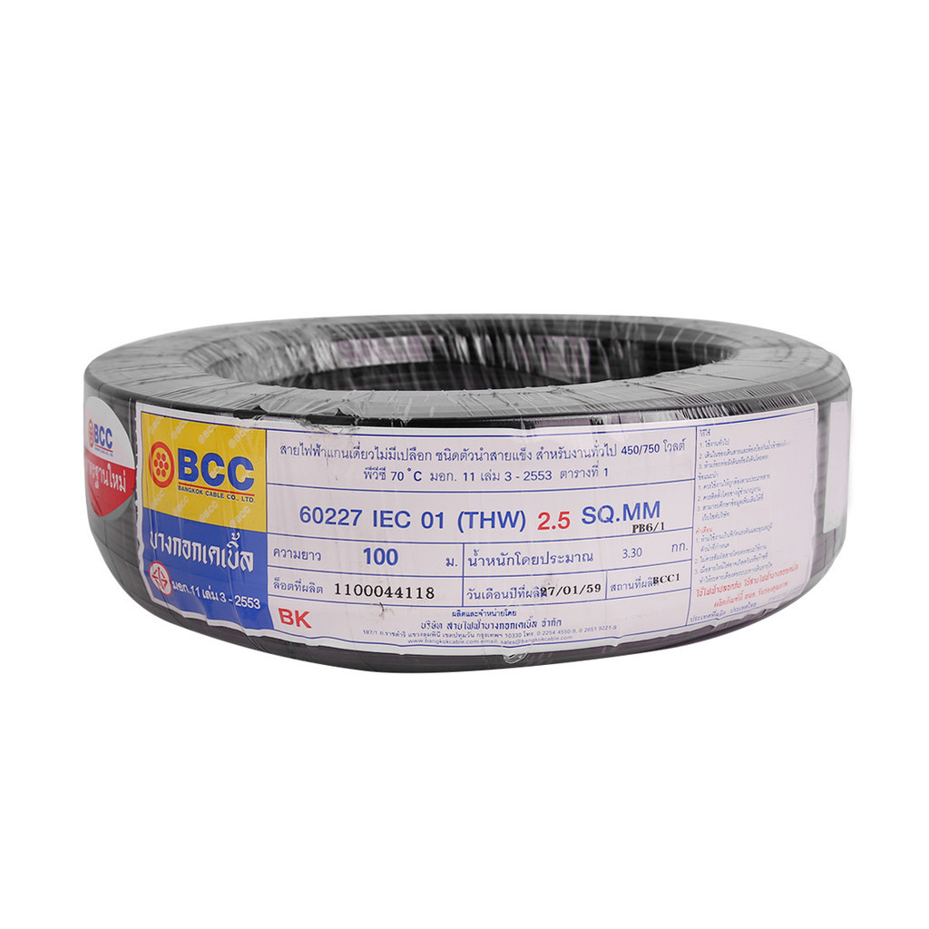 BCC สายไฟ IEC01 (THW) 1x2.5 Sqmm. ยาว 100 เมตร สีดำ |ROL|