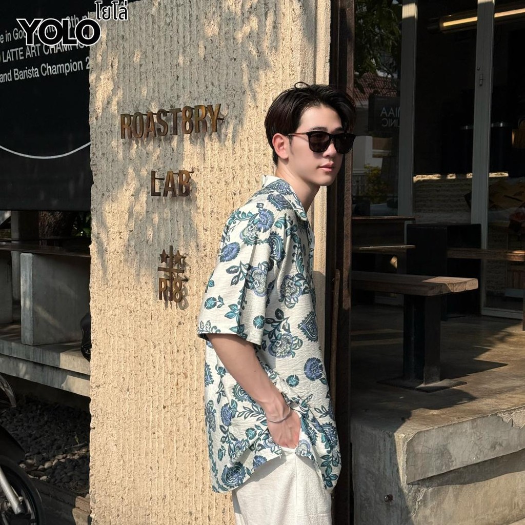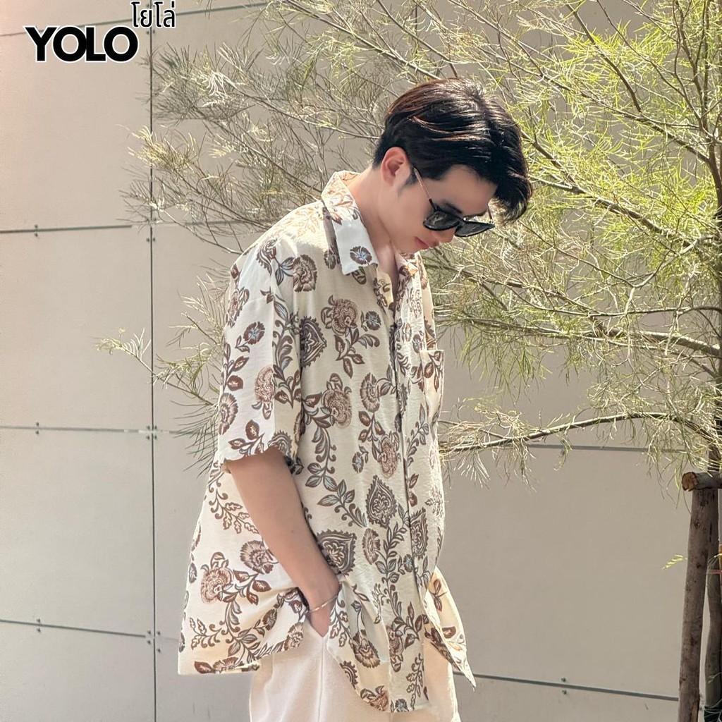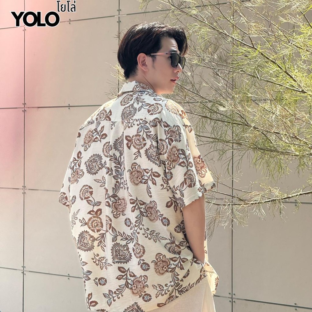 YOLO เสื้อเชิ้ต FREESIZE เสื้อเชิ้ตลายดอก เสื้อฮาวาย เสื้อสงกรานต์ แขนสั้น ติดกระดุมหน้า YT25005