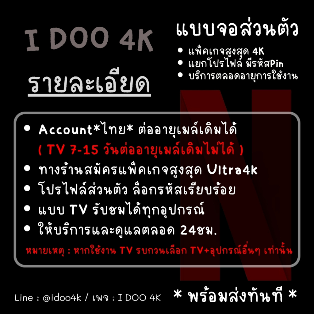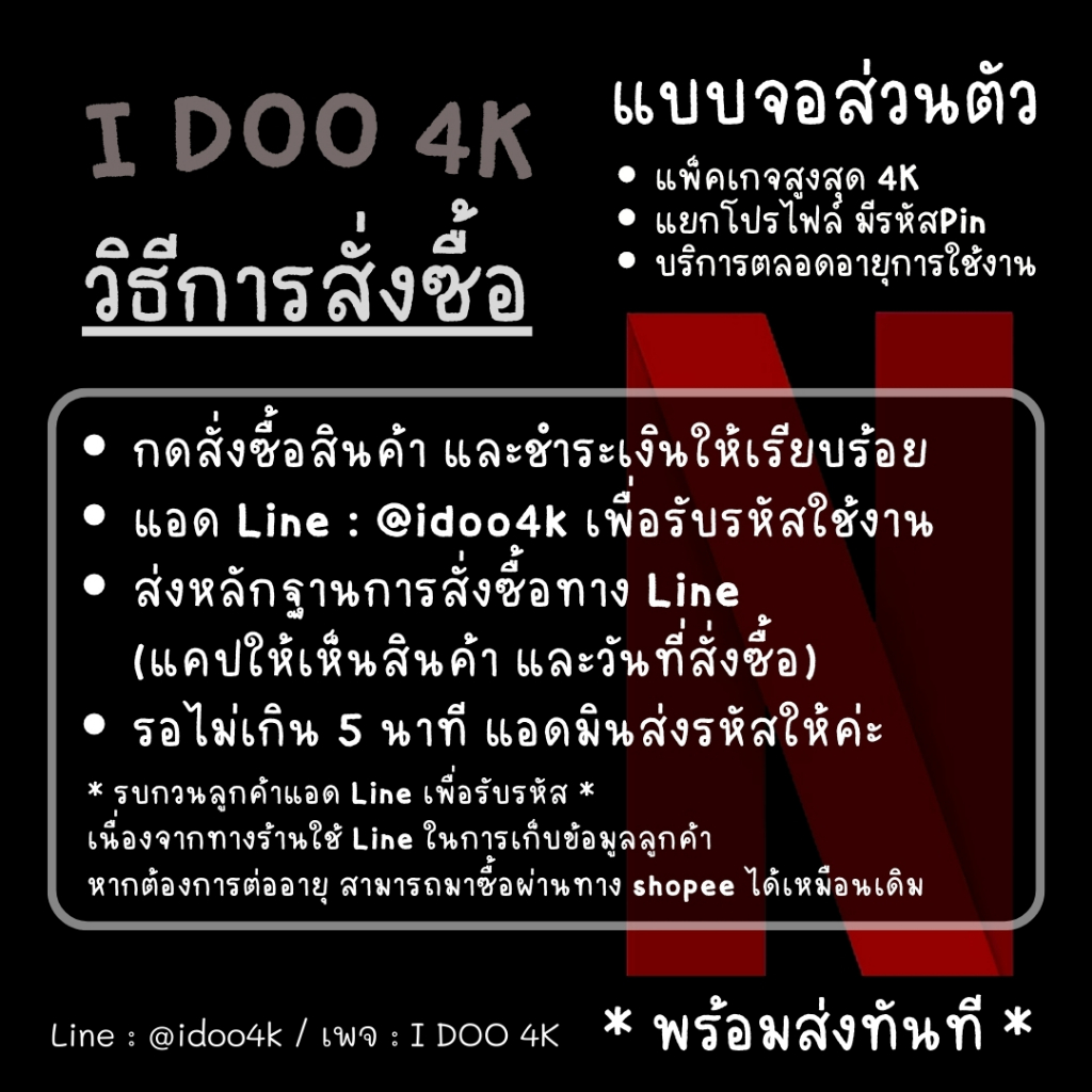 NETFLIX Premium 4K * มีแบบTV * ต่อเมล์ได้ พร้อมส่ง24ชม.(สั่งซื้อแล้วทักแชท)
