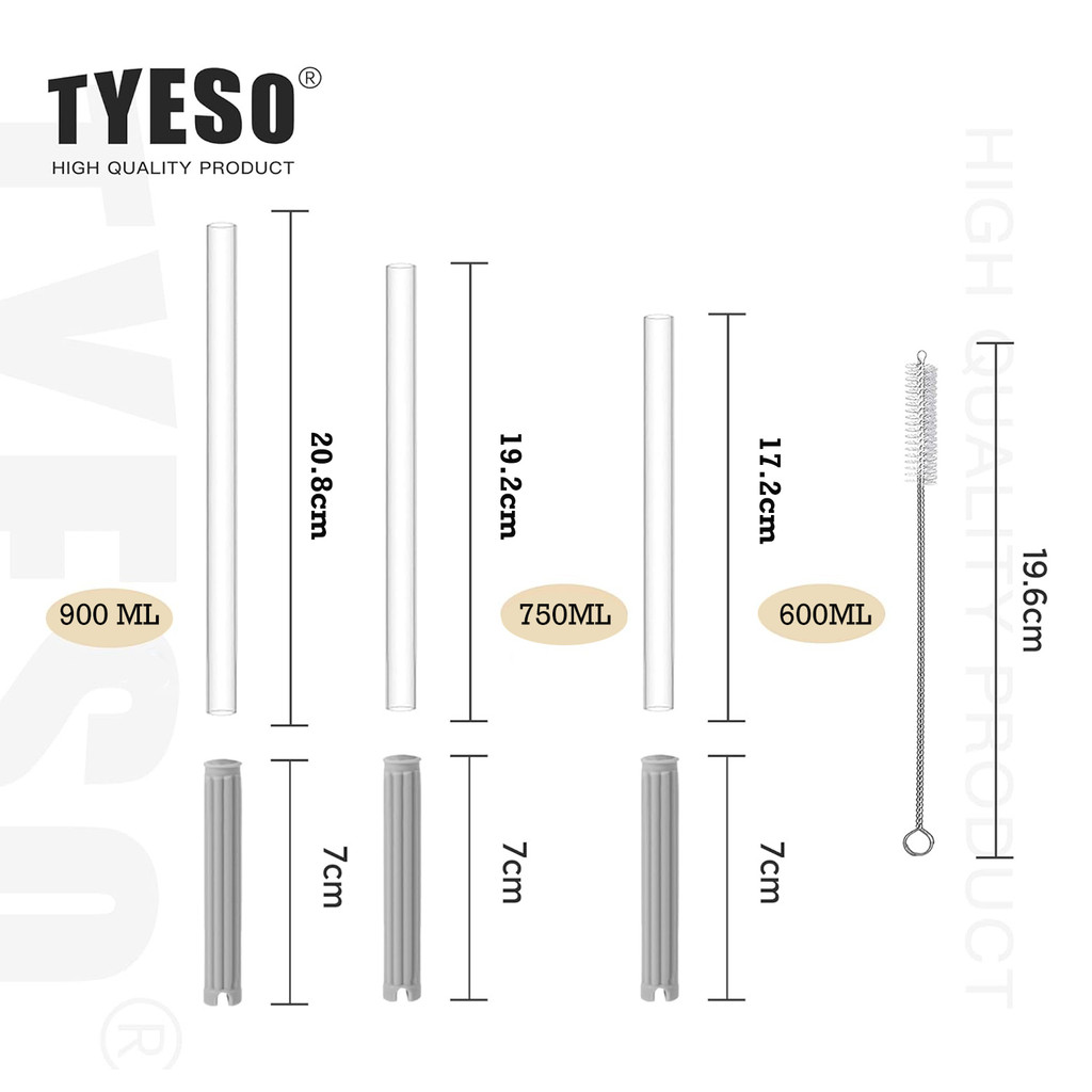 TYESO หลอดดูด PCTG พร้อมแปรงทำความสะอาด – ใช้กับขวดเก็บความเย็นรุ่น 01-01008 / 01-01009 / 01-01010 (ไม่รวมขวดเก็บความเย็น)