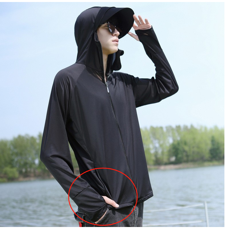 ชุดป้องกันแสงแดด ฤดูร้อนผ้าไหมน้ําแข็งใหม่ป้องกันรังสียูวีบางระบายอากาศแจ็คเก็ตตกปลากลางแจ้งอินเทรนด์