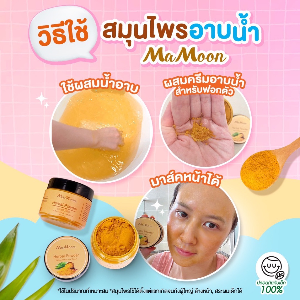 มามูน คู่หูผงสมุนไพรอาบน้ำและฟองน้ำมามูนรูปไข่มีรูพรุน