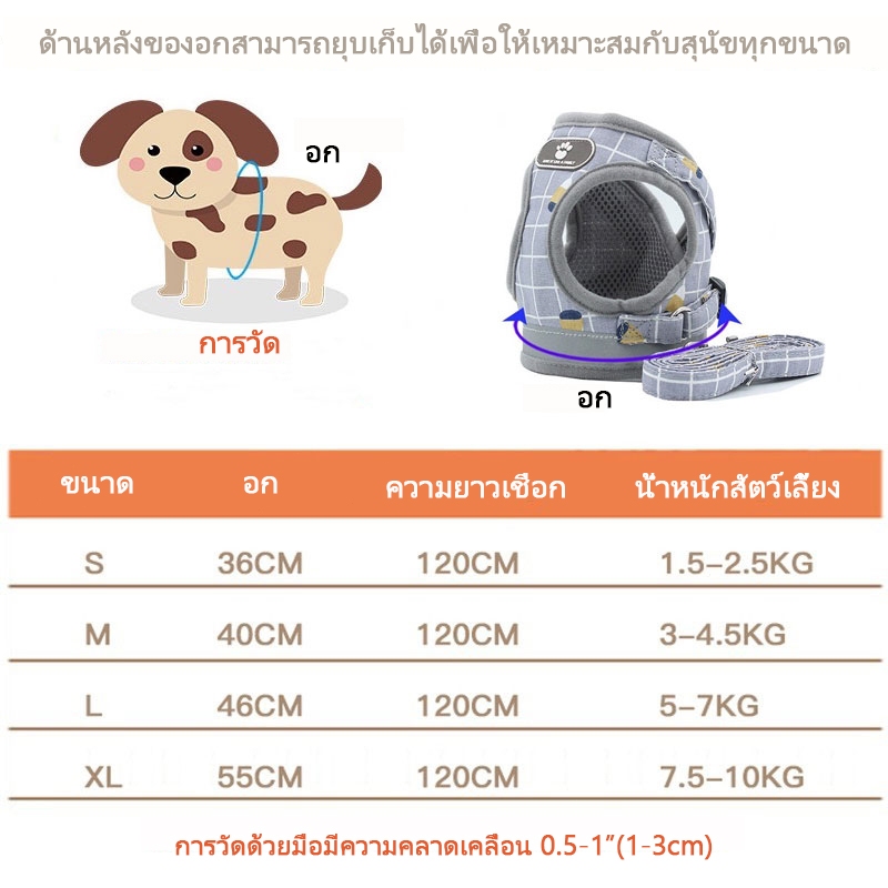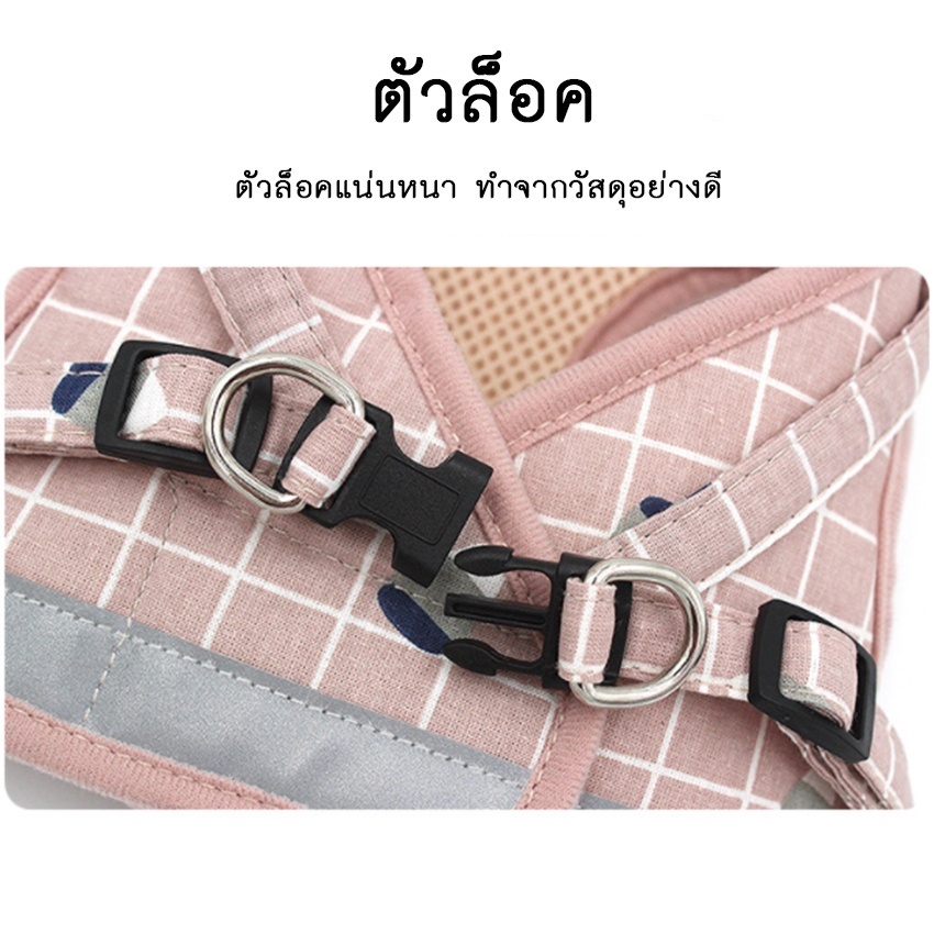 Cuttie Pettie สายรัดอกลายตาราง ปรับได้ มีแถบเรืองแสง สายจูงสัตว์เลี้ยง สายจูงหมา สายจูงแมว