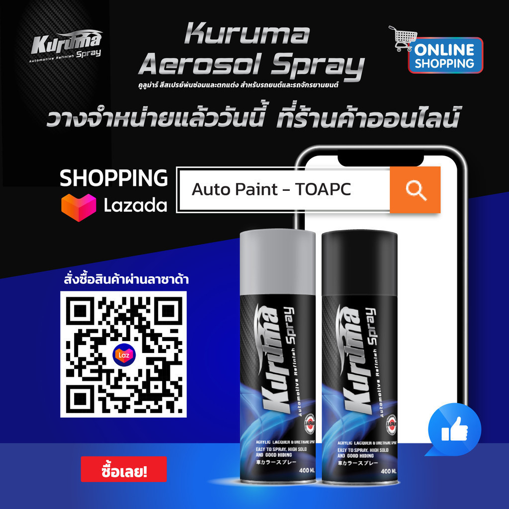 สีสเปรย์สีเบอร์ MITSUBISHI พ่นซ่อมและตกแต่ง สำหรับรถยนต์และจักรยานยนต์ (Kuruma Aerosol Spray) bonus