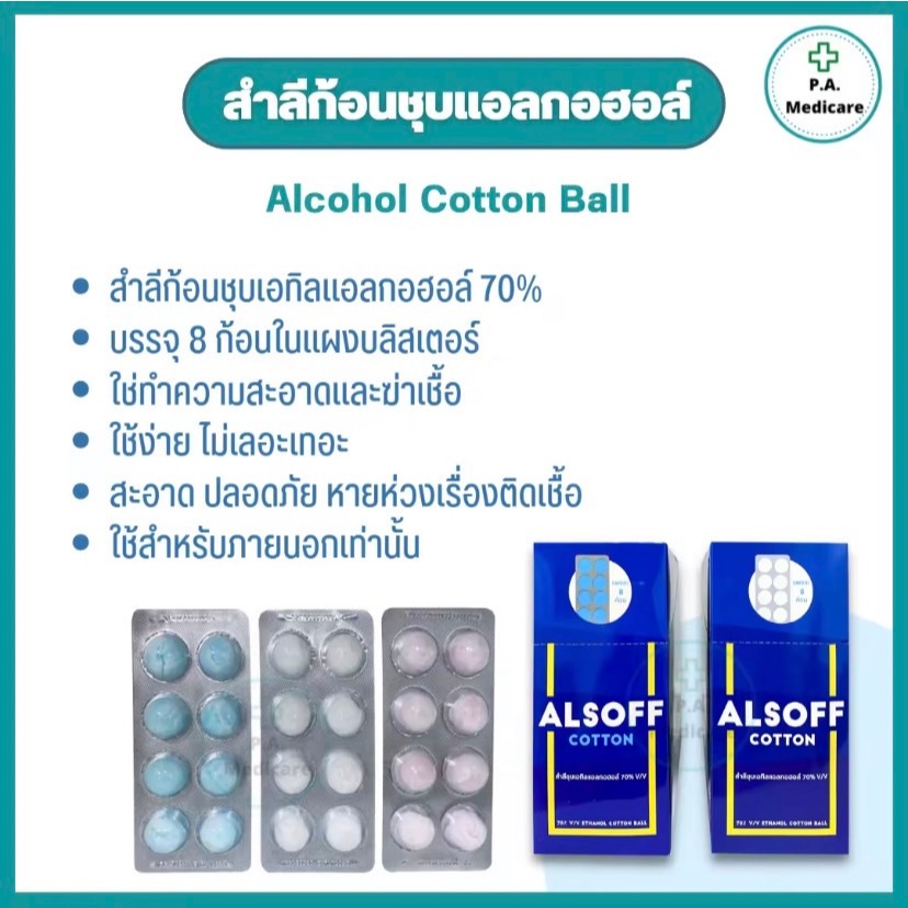 (ยกกล่อง) ALSOFF สำลีก้อนชุบแอลกอฮอล์ 96 ก้อน (12 แผง/กล่อง) สำลีชุบแอลกอฮอล์ 70% v/v สำลีเช็ดแผล สำลีก้อนทำความสะอาด