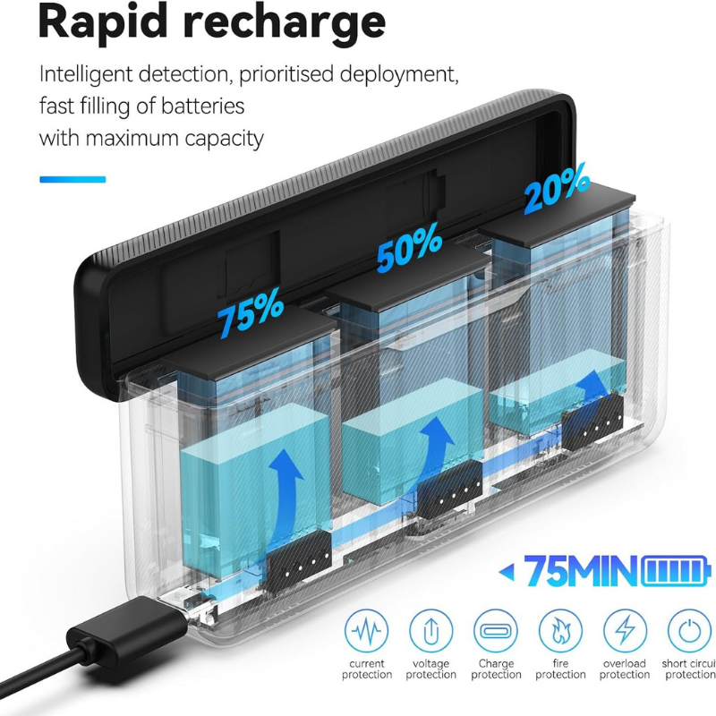 Telesin Osmo Action 5Pro/4/3 Battery Charger For DJI Osmo Action
