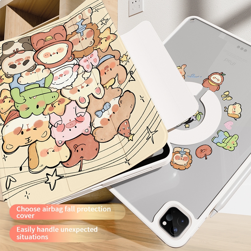 Osee pro ipad กรณีแม่เหล็กที่ถอดออกได้หมุน anti-fall โปร่งใสสําหรับ ipad M4 pro 7 13 inch Pro 2 3 4 5 11 นิ้ว Air 13 นิ้ว ipad air 4 ไอแพด air 5 ไอแพด air 6 air 7 M2/M3 11 inch(2020/2022/2024/2025) ipad gen 7 8 9 ไอแพด gen 10 gen 11 mini 6 mini 7 กรณี