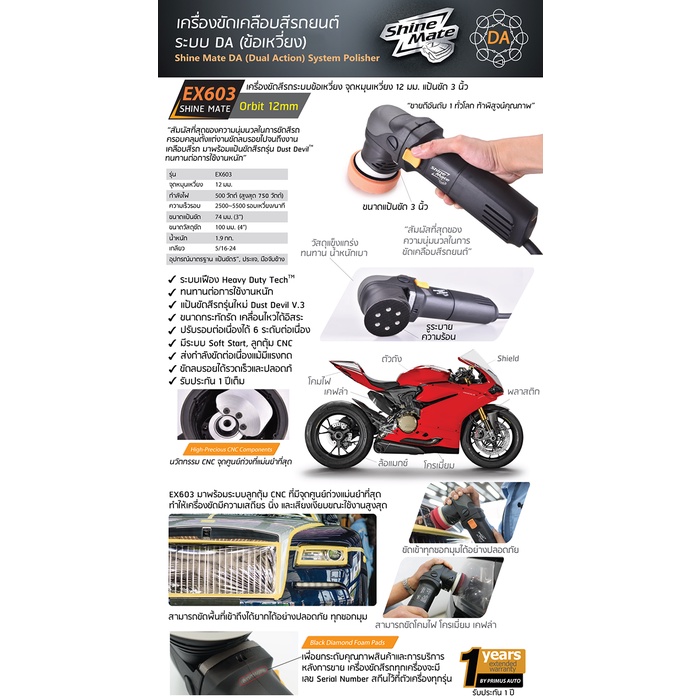 Shine Mate เครื่องขัดสีรถ รุ่น EX603 แป้นขัดขนาด 3 นิ้วระบบ DA (Dual Action) รับประกันศูนย์ไทย
