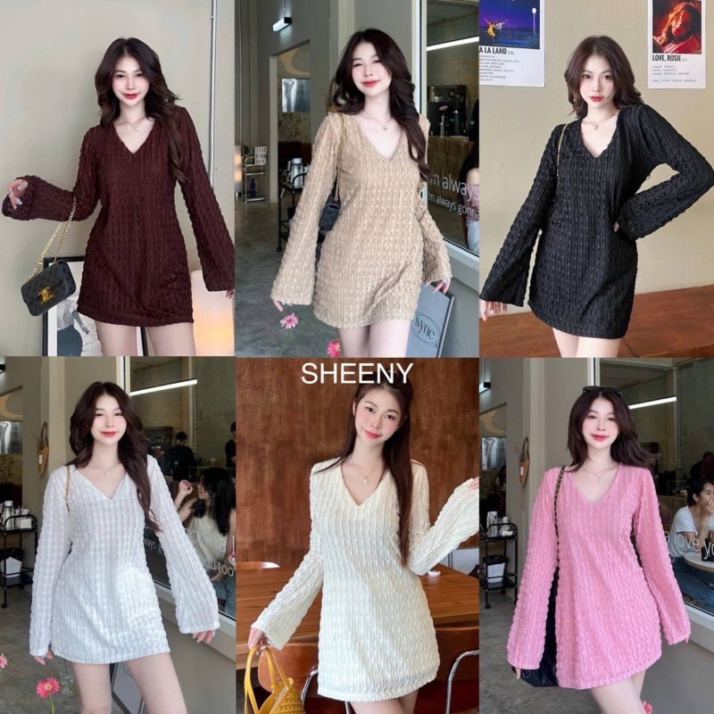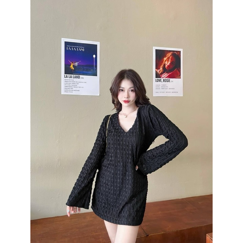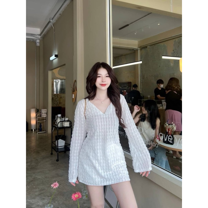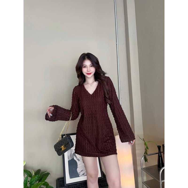 Valen minidress มินิเดรสแขนยาวคอวี หรือจะใส่เป็นเสื้อตัวยาวก็ได้คะ สาวอวบใส่ได้คะ