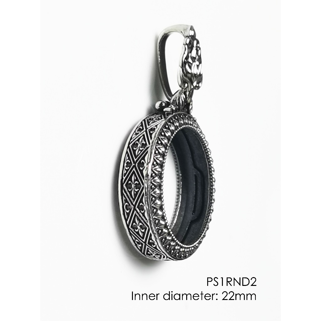 PS1RND2Whitebrass round amulet casing inner diameter 22mm กรอบพระไวท์บราส ทรงกลม ไซส์เหรียญ 2บาท