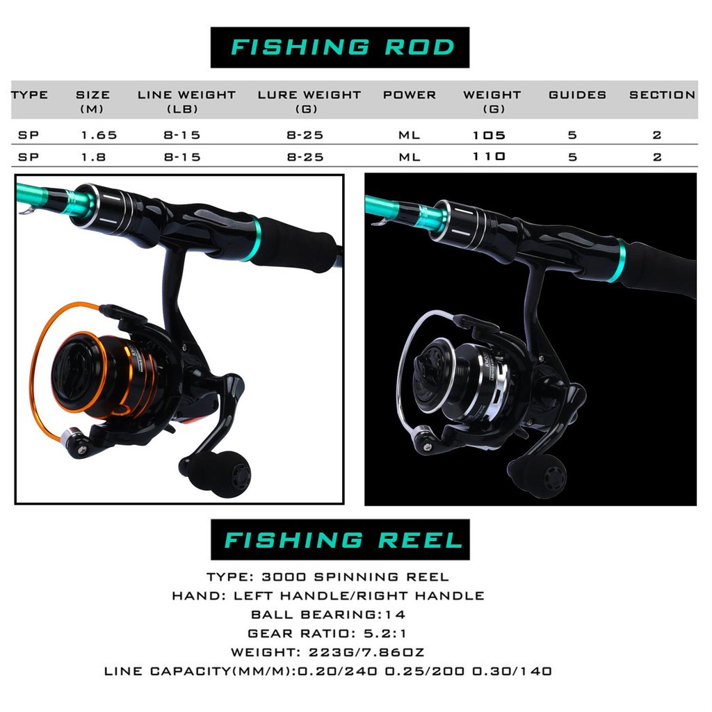 FRRTC คาร์บอนสูงสีเขียว Spinning Rod พร้อม 5.2:1 อัตราทดเกียร์ตกปลา Reel กีฬากลางแจ้งตกปลา Tackle