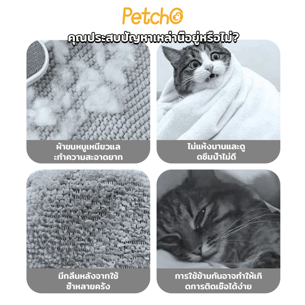 Petcho ผ้าเช็ดตัวสัตว์เลี้ยง ผ้าเช็ดขนแมว สุนัข ผ้าขนหนูดูดซับสัตว์เลี้ยง นุ่มนิ่ม ซับน้ำ สะดวก