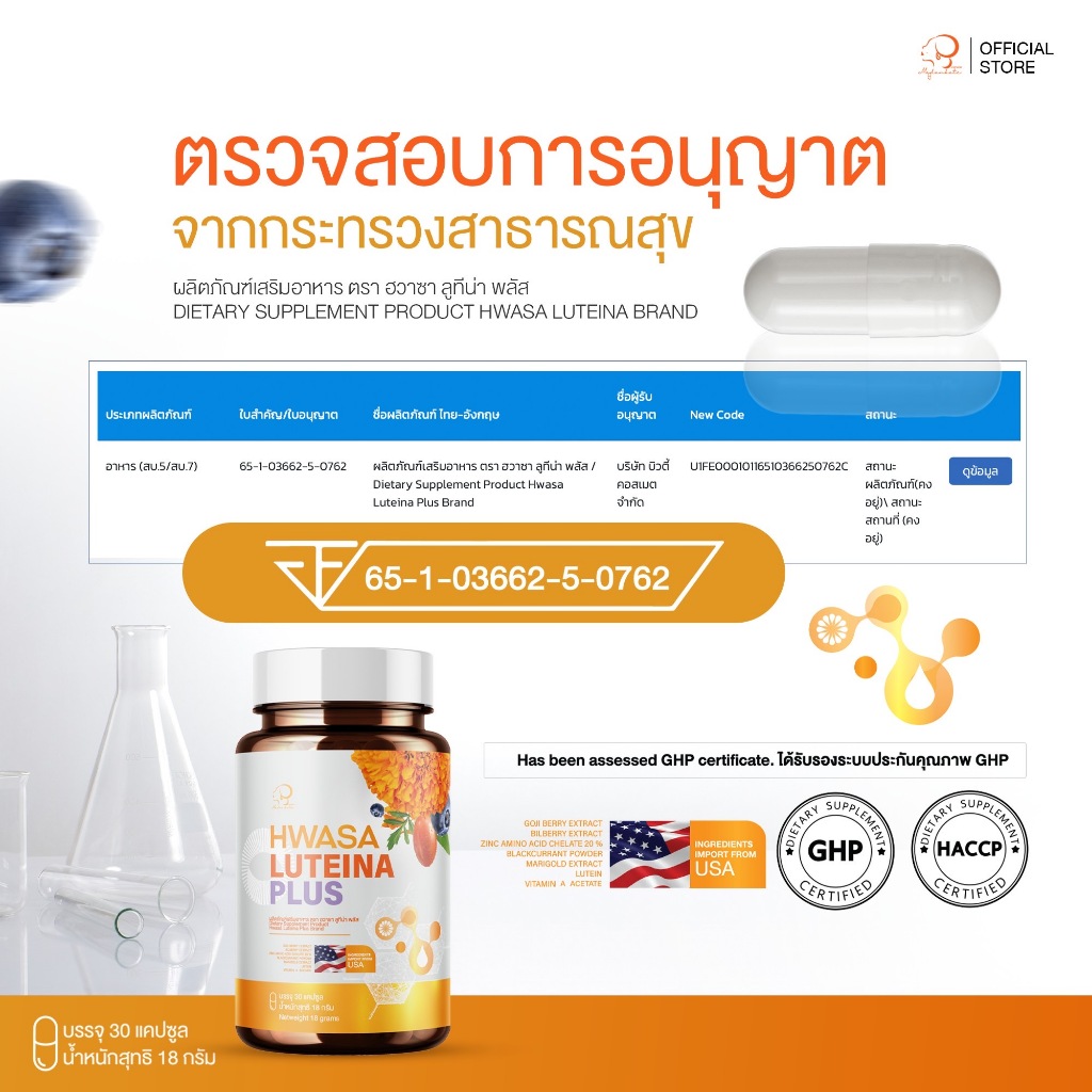 HWASA Luteina Plus ฮวาซา ลูทีน่า พลัส บำรุงสาย 1กระปุก 30แคปซูล