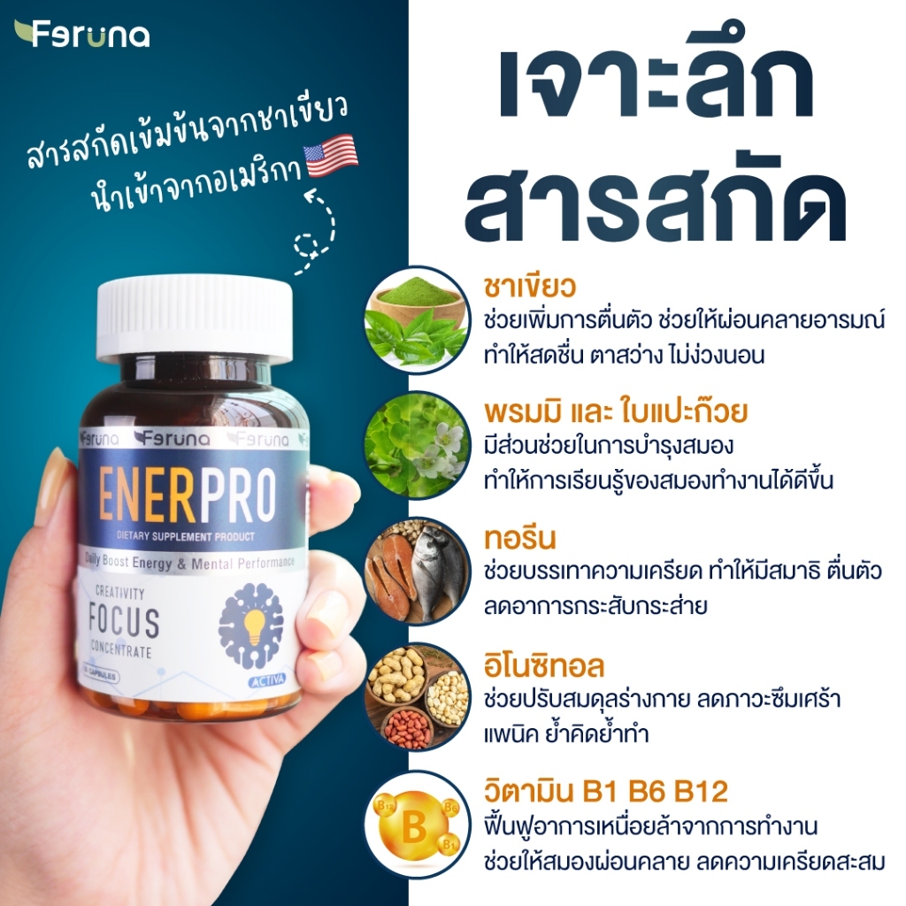 [4 กระปุก] Feruna Enerpro ฟีรูน่า เอนเนอร์โปร บูสต์พลังให้สมอง แก้ง่วง เพิ่มโพกัส ความจำ บอกลากาแฟและเครื่องดื่มชูกำลัง