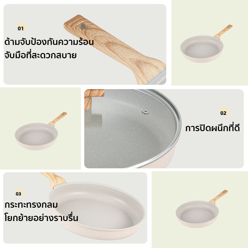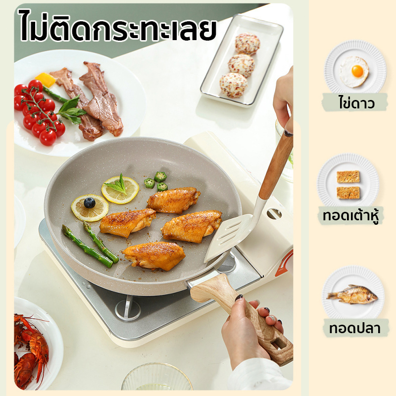 กะทะ กระทะเคลือบหินอ่อน กระทะ กระทะไม่ติด ทำความสะอาดง่าย ใช้ได้กับเตาทุกประเภท