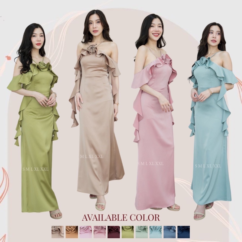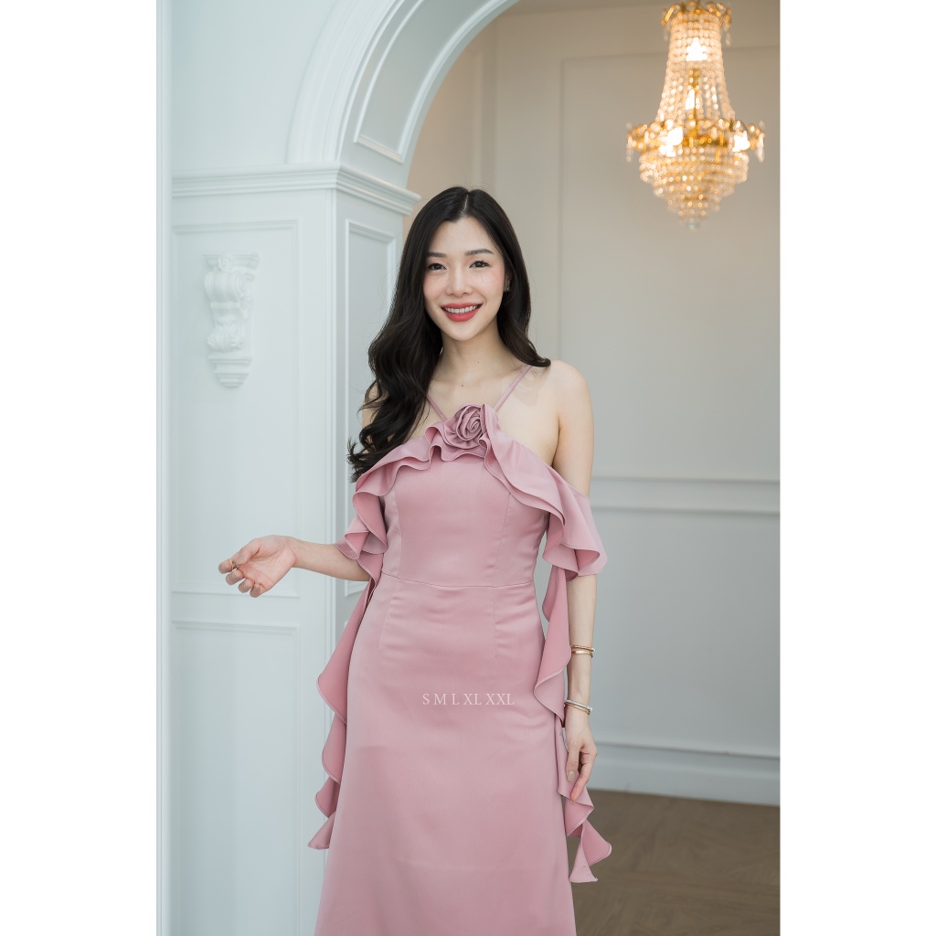 ชุดออกงาน ชุดเพื่อนเจ้าสาว koolykool เดรสสายเกลียวข้างตัวแถมดอกไม้ AJ00
