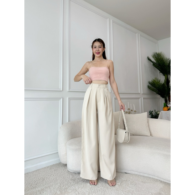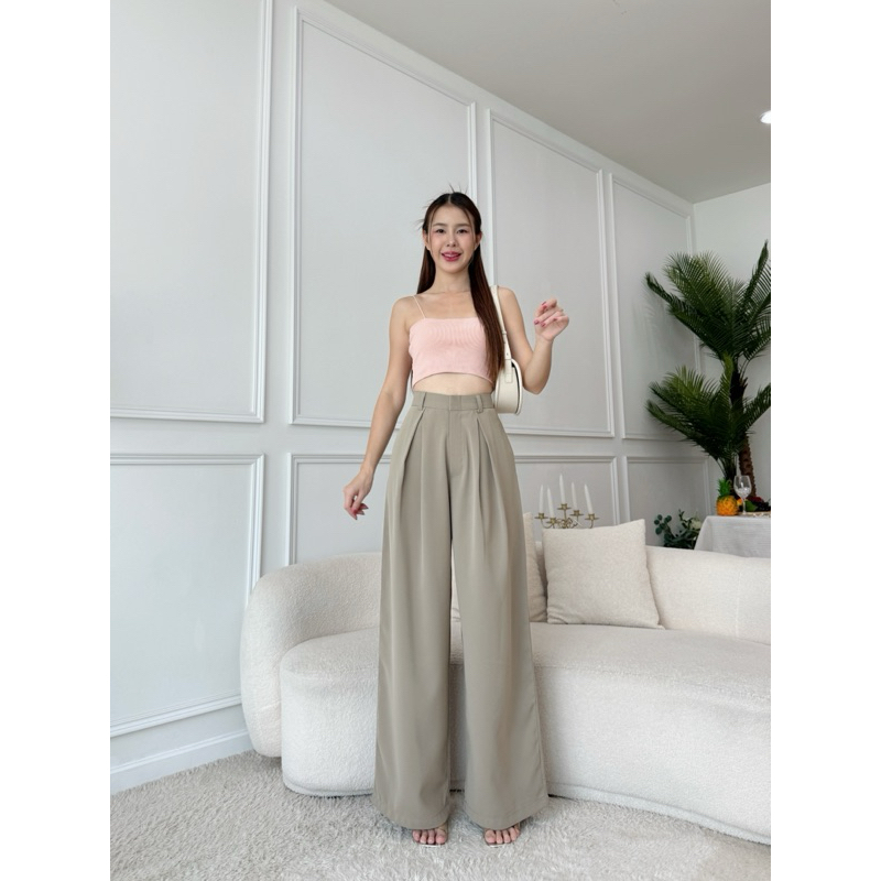 กางเกงขากระบอกใหญ่ ดีเทลจีบทวิส ผ้าลิลลี่พรีเมียร์