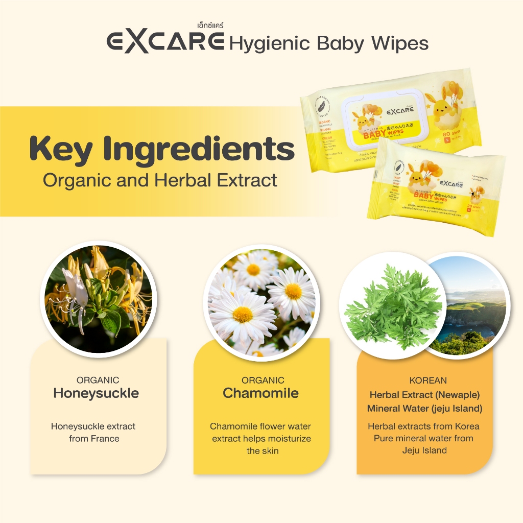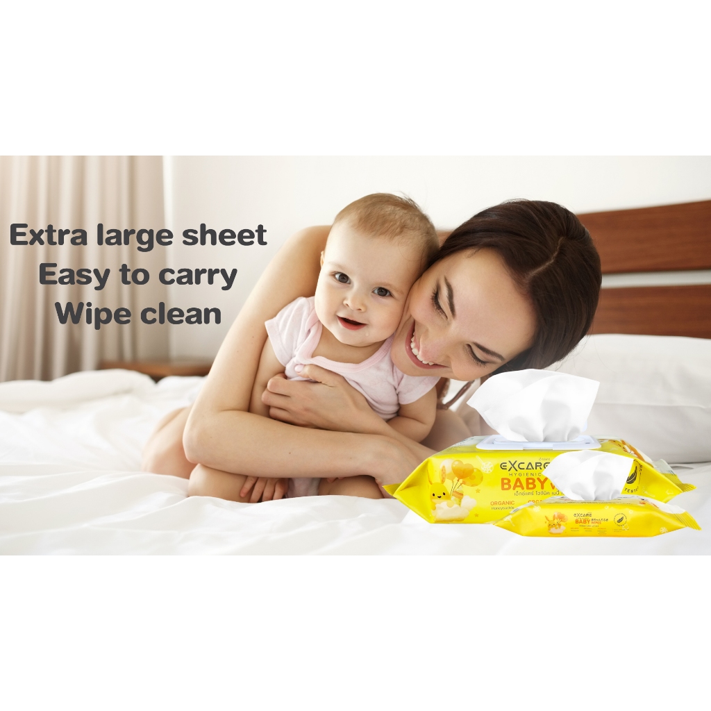 ทิชชู่เปียก ออร์แกนิค EXCARE BABY Wipes ผ้าเช็ดทำความสะอาดสำหรับเด็ก ทำความสะอาดก้นเด็ก สูตรอ่อนโยน
