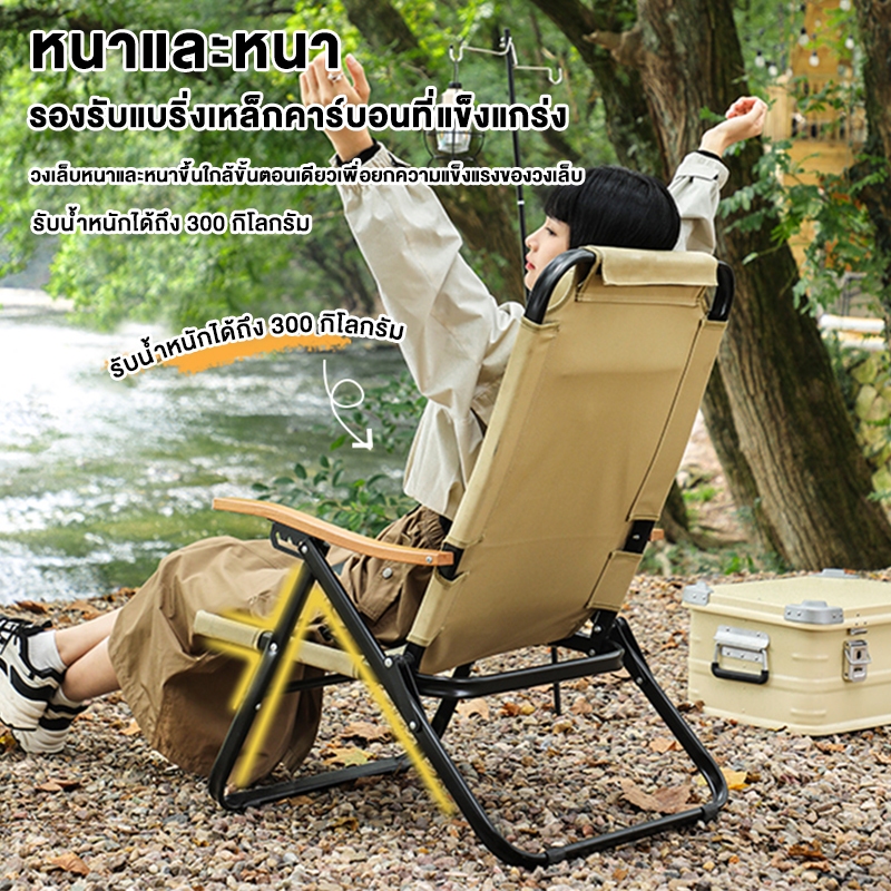 DoDo เก้าอี้แคมป์ปิ้ง พนักพิงสูง เก้าอี้สนาม พับได้ แบบพกพา ปิคนิค สีกากี/สีดำ รับน้ำหนักได้300KG