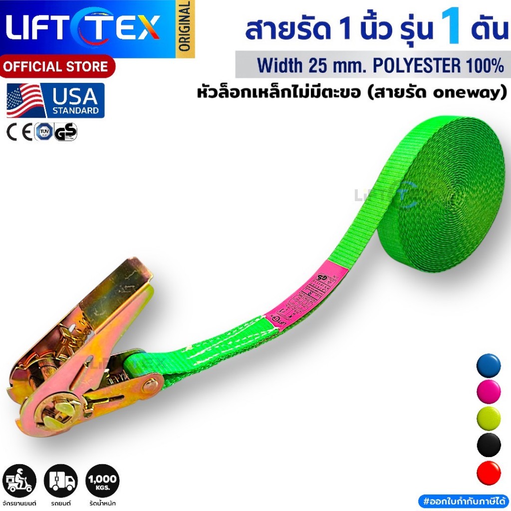 สายรัดก๊อกแก๊ก 1นิ้ว1ตัน หัวล็อคเหล็ก วันเวย์ก๊อกแก๊กLifttex (แท้)(สายรัดของบนรถมอเตอร์ไซค์ รถยนต์ )