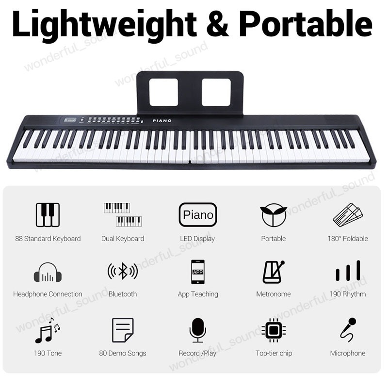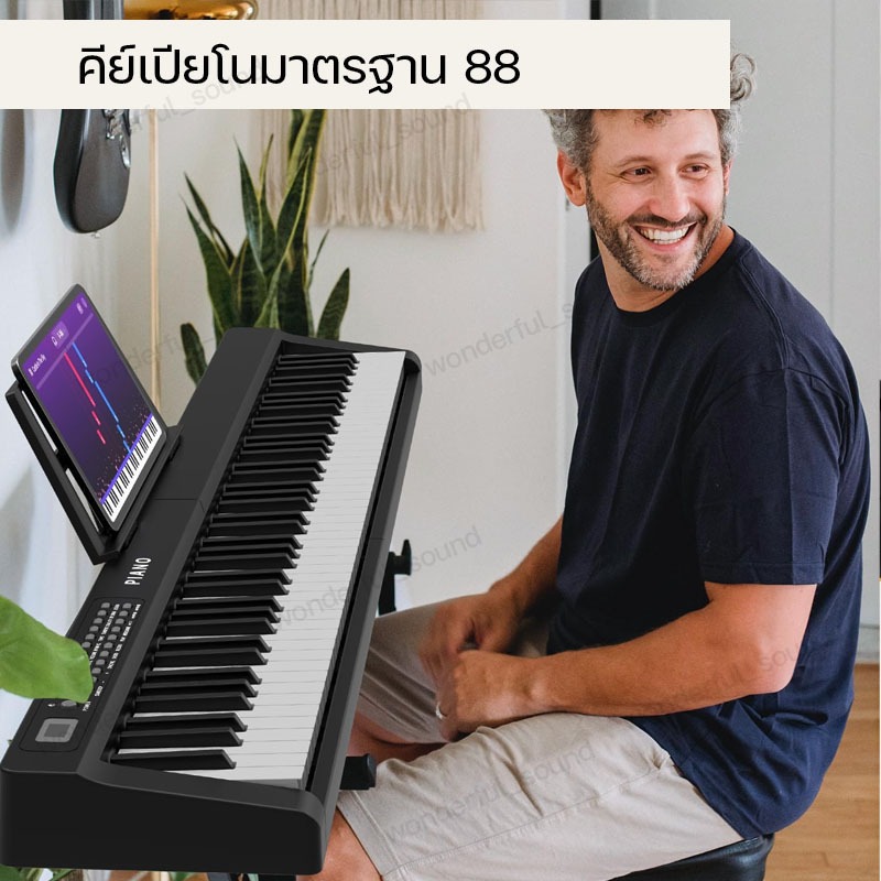 เปียโนไฟฟ้าอัจฉริยะ88/61เปียโนไฟฟ้าพับเก็บได้ Bluetooth คีย์เสียงดี มีแบตในตัว