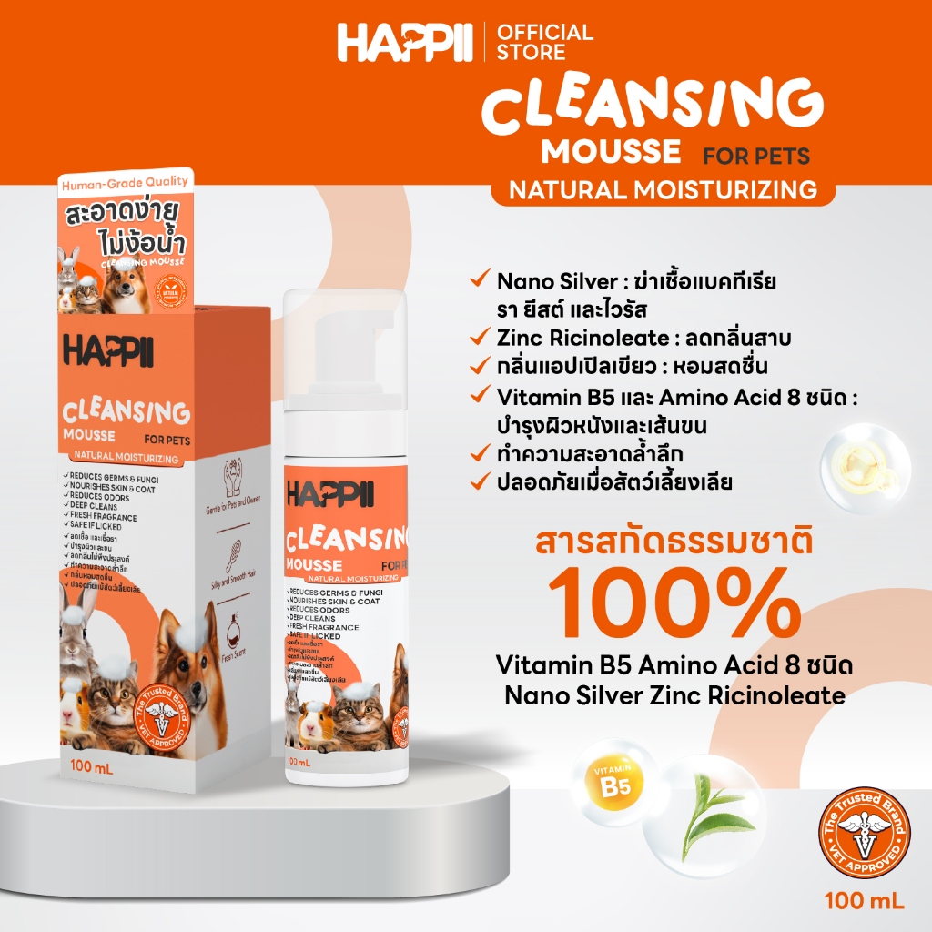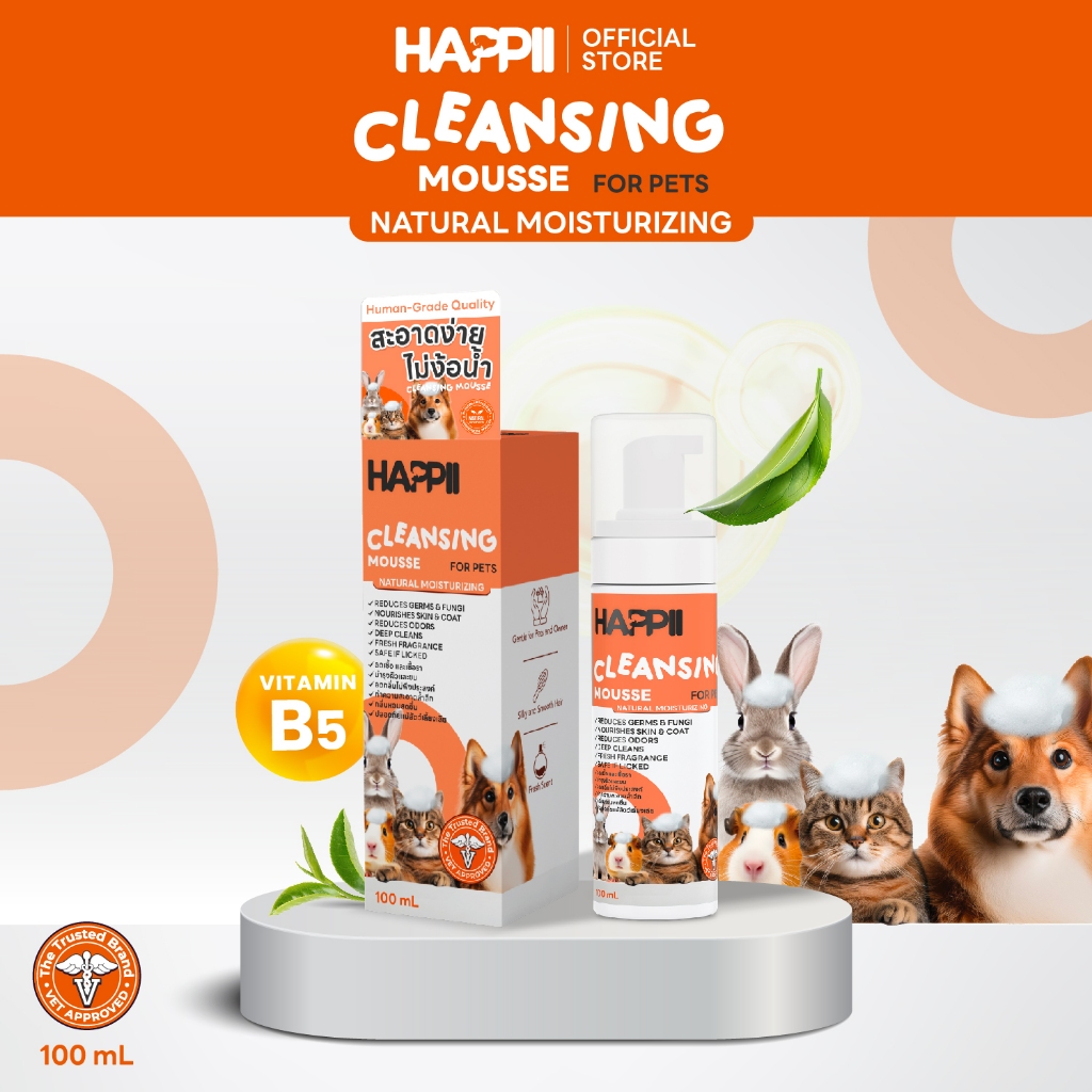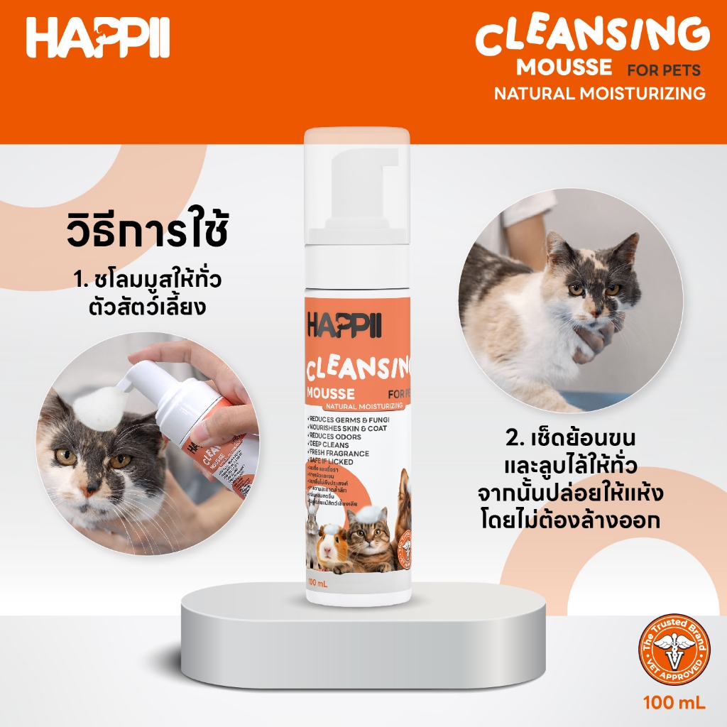 Happii cleansing mousse For Pets 100ml สะอาดง่าย ไม่ง้อน้ำ กลิ่นแอปเปิลเขียว