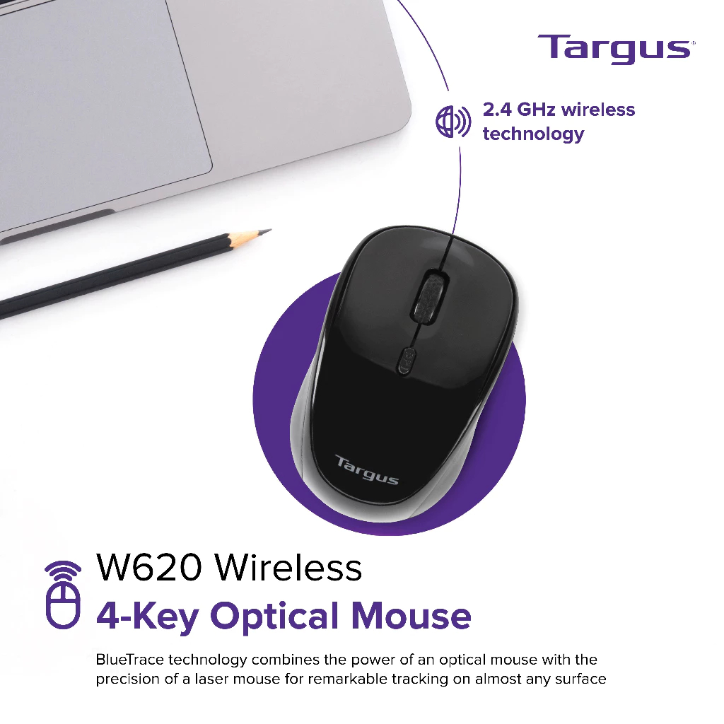MOUSE (เมาส์ไร้สาย) TARGUS W620 WIRELESS 4-Key BlueTrace Mouse (AMW620)