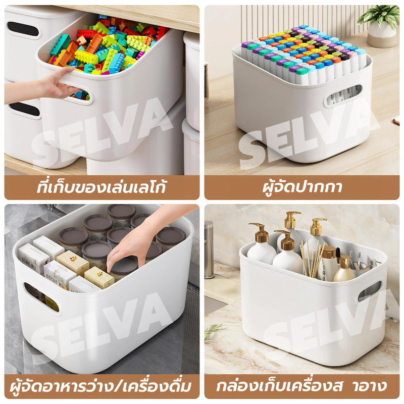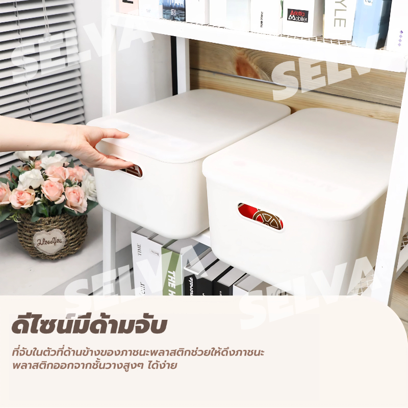 กล่องเก็บของ กล่องพลาสติกจัดเก็บเอนกประสงค์ กล่องเก็บของพลาสติกสีขาว หลายขนาด พร้อมฝาปิด กล่องพลาสติก มีที่จับ