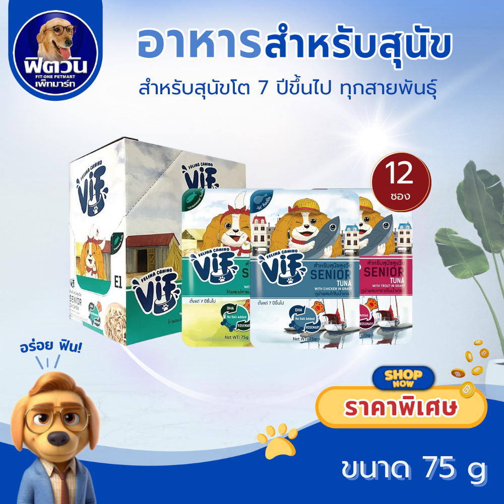 Felina Canino VIF Super Premium dog Pouch สุนัขสูงวัย 75g จำนวน (ขายยกกล่อง 4 โหล)