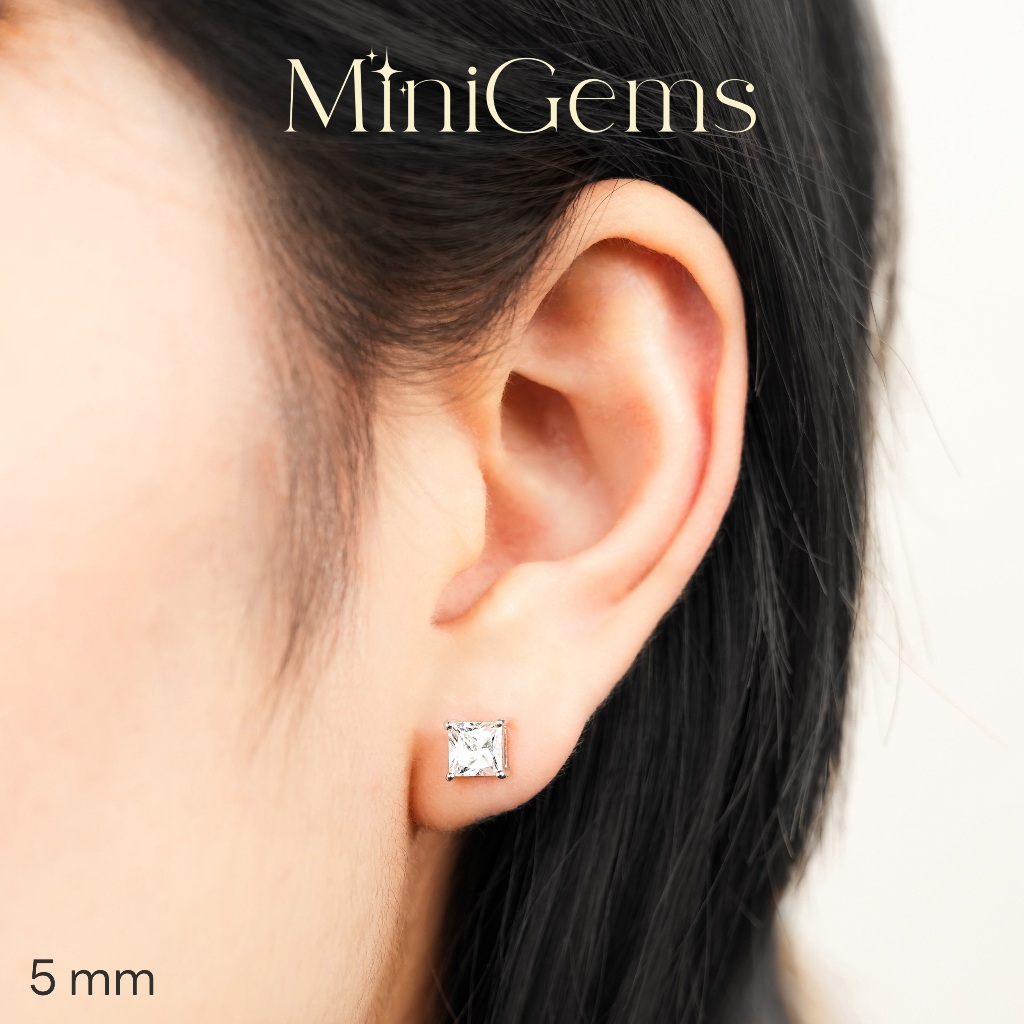 Mini Gems ต่างหู Jewelry เพชรสวิส CZ ต่างหูเงินแท้ 92.5 ทรงเหลี่ยมจัตุรัส SQ