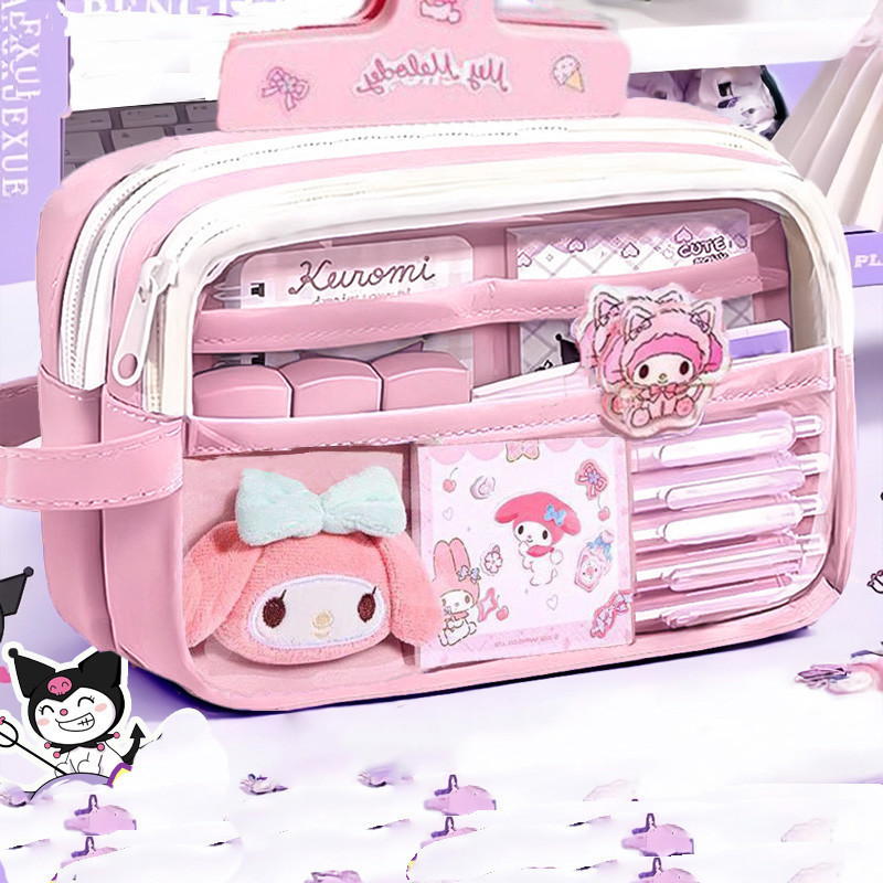 กระเป๋าดินสอใสขนาดใหญ่กันน้ำน่ารักและมีสไตล์ - Kuromi, Cinnamoroll, My Melody และซิปที่ทนทานสำหรับโรงเรียน วัยรุ่น เด็กชายและเด็กหญิง