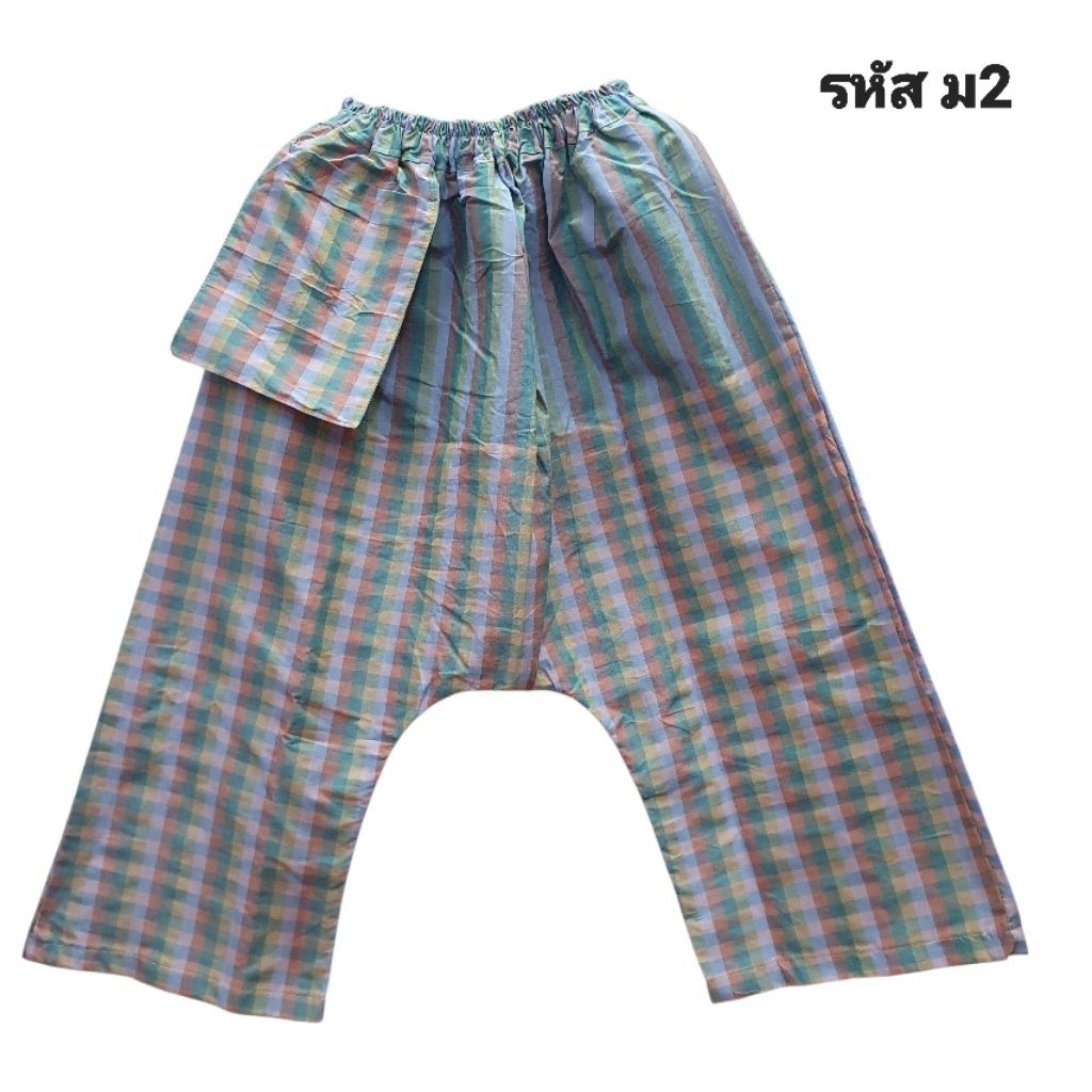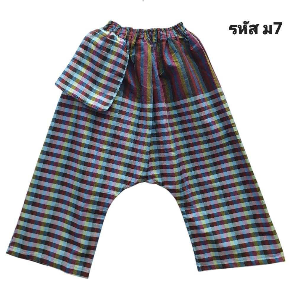 กางเกงผ้าขาวม้าทรงแม้วเป้ากว้างนั่งง่ายไม่มีแตกทนต่อการใช้งานขนาดฟรีไซส์