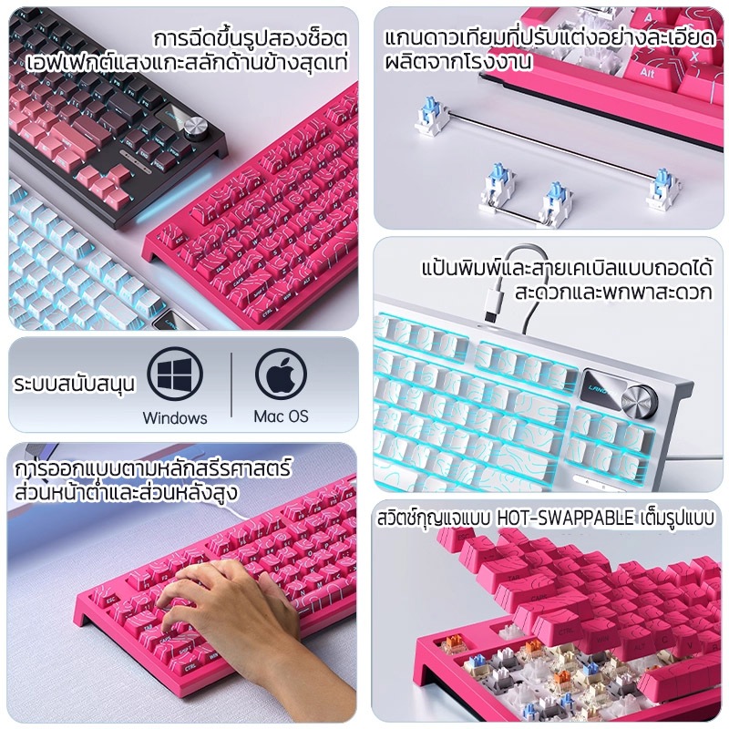 LANGTU LT84 คีย์บอร์ด แป้นพิมพ์ไทย คีย์บอร์ดเมคคานิคอล 84 คีย์ แบบใช้สาย สําหรับเล่นเกมส์ สํานักงาน PC/iPad