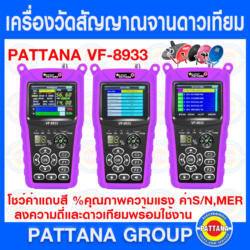 เครื่องวัดสัญญาณจานดาวเทียม PATTANA VF-8933 เมนูภาษาไทย ลงโปรแกรม40ดาวเทียม พร้อมใช้งาน