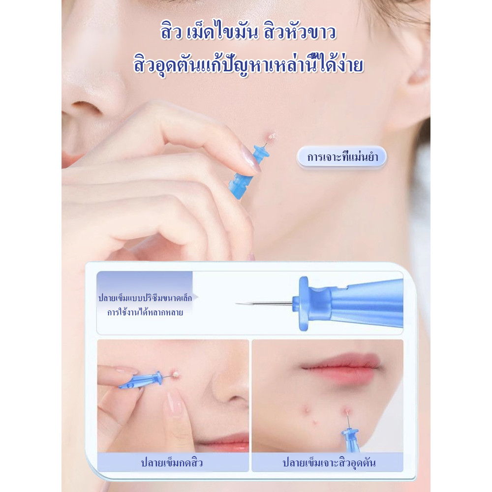 🔥โจัดส่งจากคลังสินค้า Shopee🔥เข็มกดสิวกำจัดสิวเสี้ยนไม่ปวดกันเชื้อแบคทีเรียแบบใช้แล้วทิ้ง กล่องทิ้งเข็มสิว/หัวดูดสิว แบบใช้แล้วทิ้ง ปลายซิลิโคนโค้งพิเศษ เทคโนโลยีปลายมนไม่บาดผิว เหมาะกับผิวแพ้ง่าย คุ้มครองชั้นกำพร้า