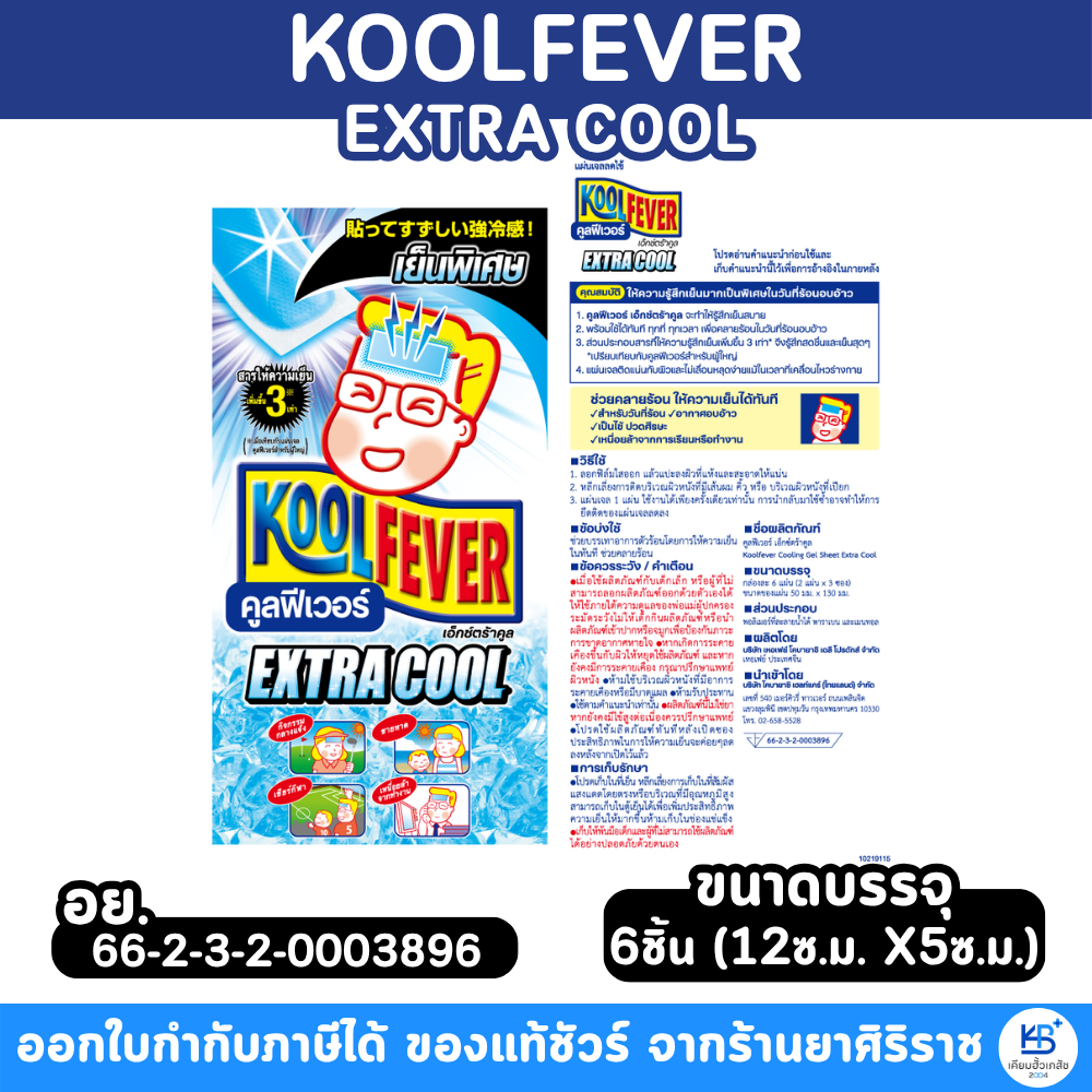 KOOLFEVER EXTRA COOL คูลฟีเวอร์ เย็นพิเศษ 1กล่องมี6ชิ้น (12CM X 5CM)