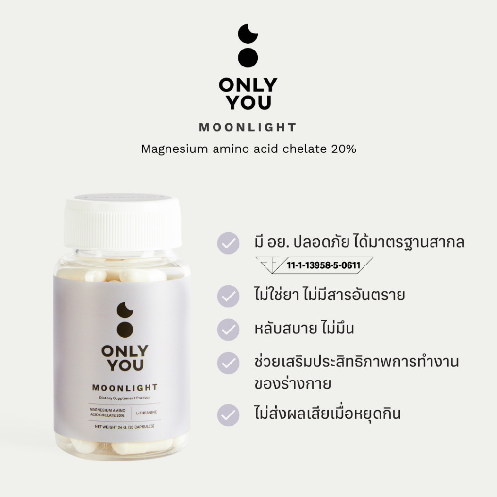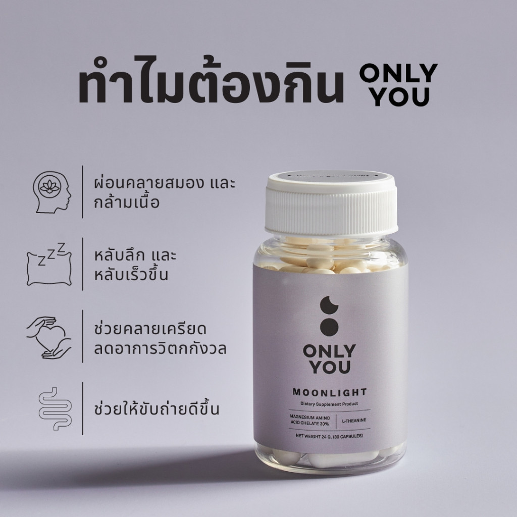 04_Only You รุ่น Moonlight แมกนีเซียม Magnesium 300 มก + L-Theanine และ Vit B บรรจุ 30เม็ด แคปซูล
