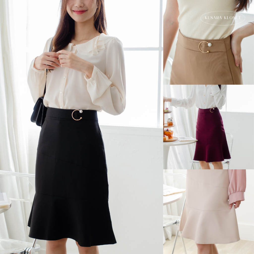 กระโปรงทำงานเอวสูง ทรงระบายหัวเข็มขัด ยาว22' Jasmine Skirt