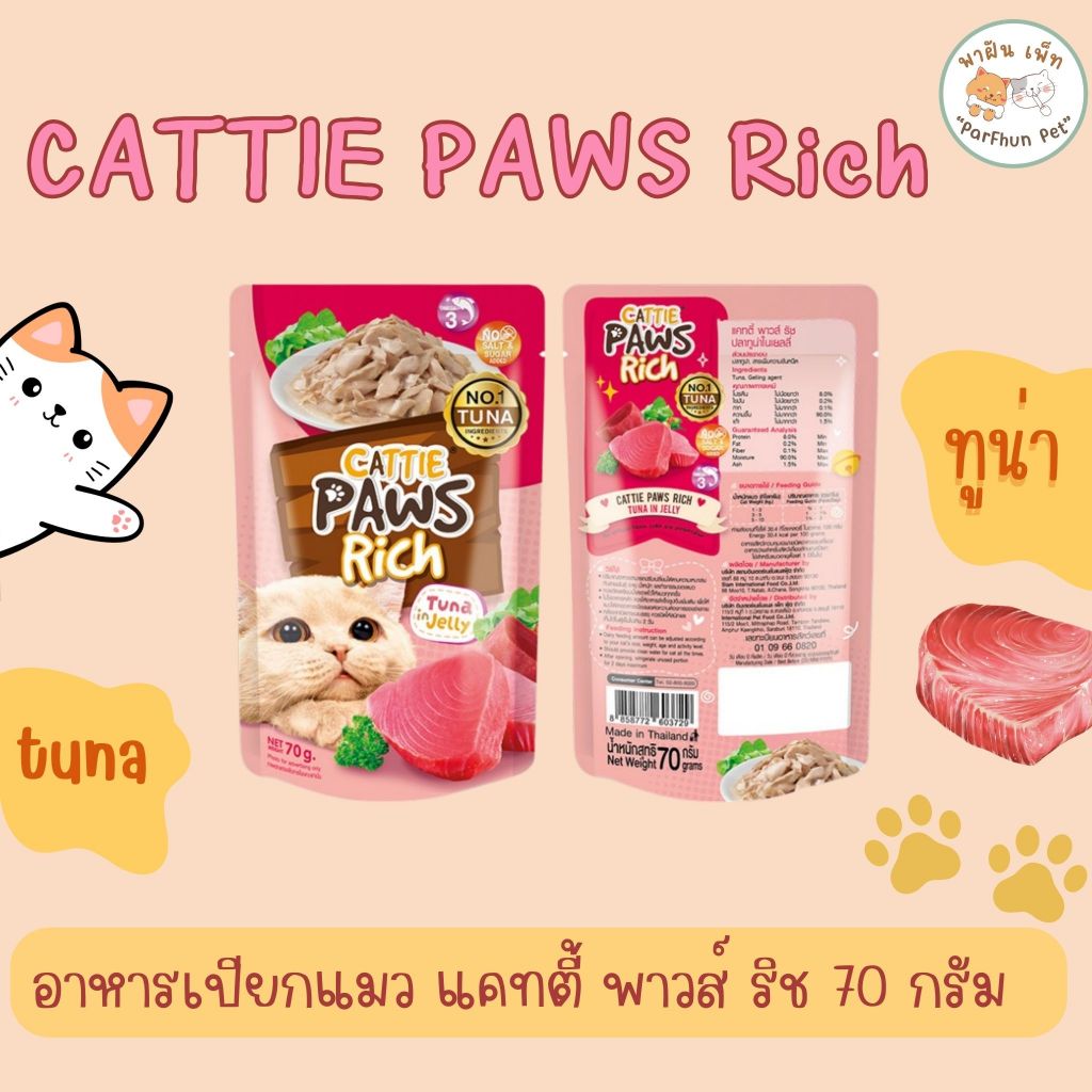 อาหารเปียกแมว Cattie Paws Rich แคทตี้ พาวส์ ริช บรรจุ 12 ซอง