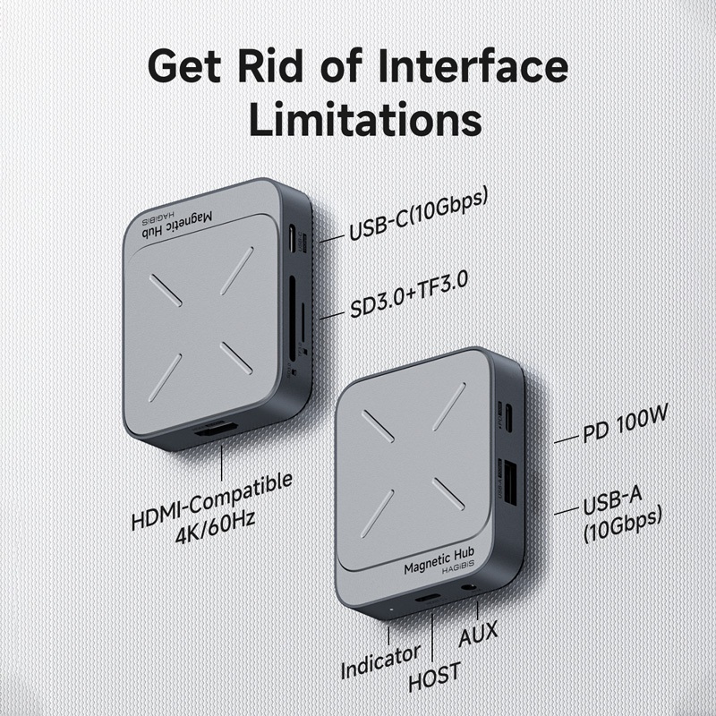 Hagibis 7 in 1 Magnetic USB C Hub Type-C Multiport Adapter Docking Station 4K HDMI 100W PD SD/TF3.0 สําหรับ iPhone 16/15 แท็บเล็ตแล็ปท็อปโทรศัพท์มือถือ ฯลฯ