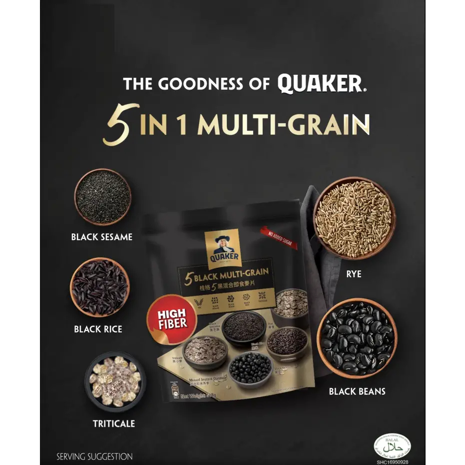 เควกเกอร์ ข้าวโอ๊ต มัลติเกรนสีดำ 5 ชนิดQuaker Oats Five Black Multigrain 518g Product of china HALAL