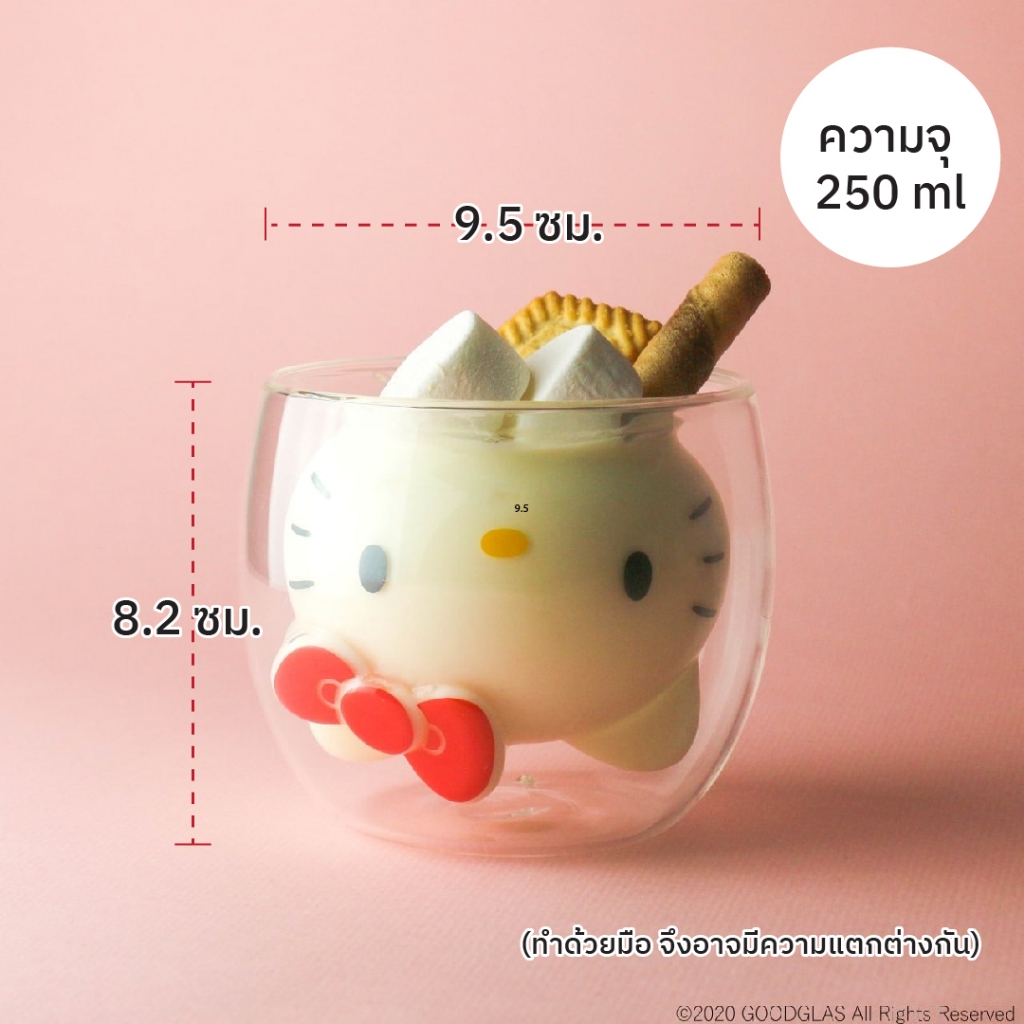 Goodglas แก้ว 2 ชั้น sanrio Kitty Double Wall Glass Cup 250ml ลิขสิทธิ์แท้จากญี่ปุ่น พร้อมส่งจากไทย