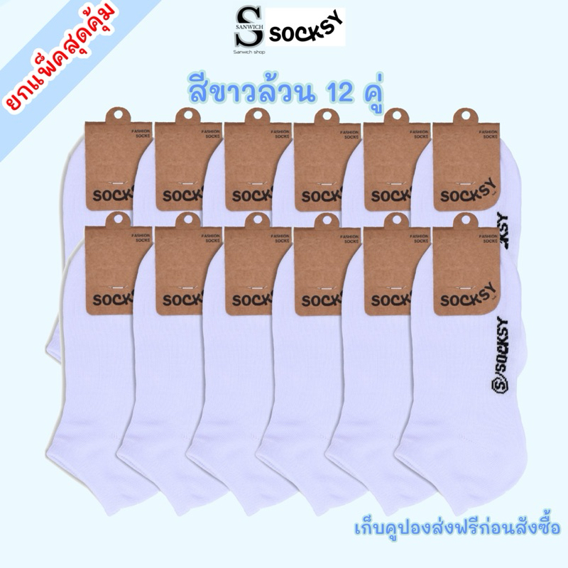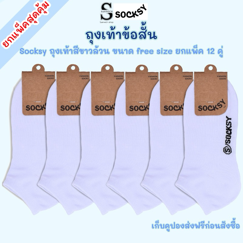 Socksyถุงเท้านักเรียนข้อสั้น ถุงเท้าใส่ทำงาน สีขาว ขนาดfreesize ใส่ได้ทั้งหญิงและชาย