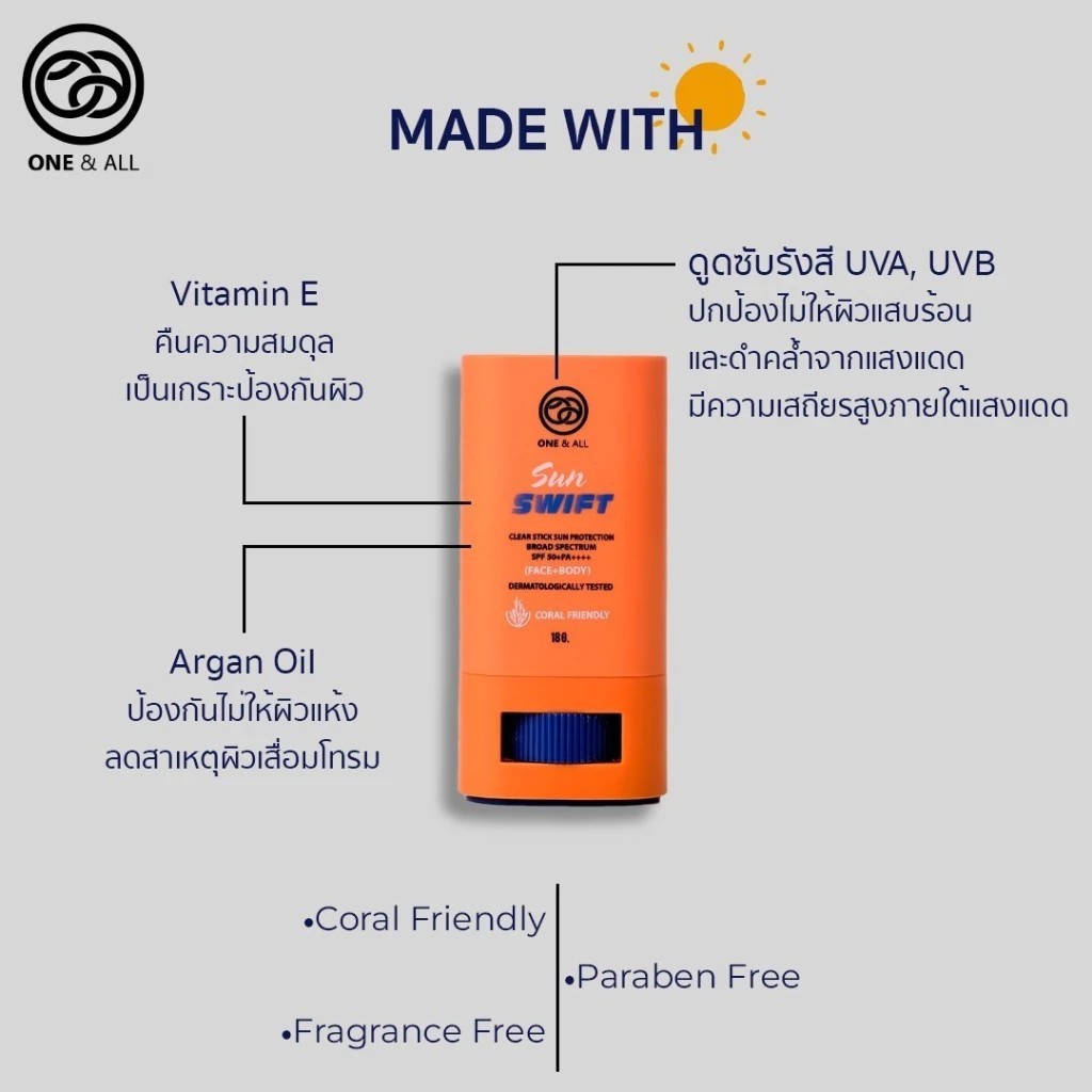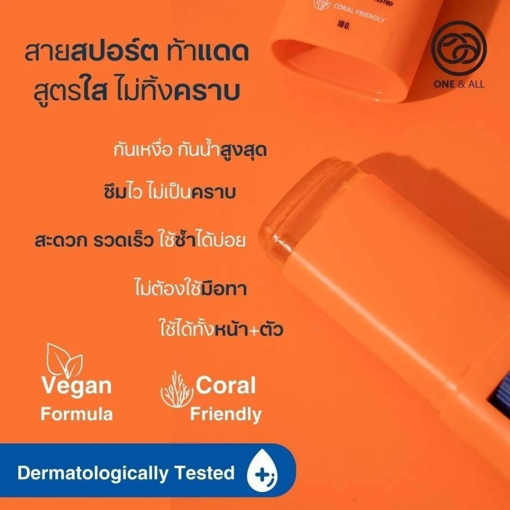 One&All Sun Swift Clear Stick Sun Protection SPF50+PA++++ กันแดดสีใสแบบสติ๊ก หน้า+ตัว ไม่ทิ้งคราบขาว
