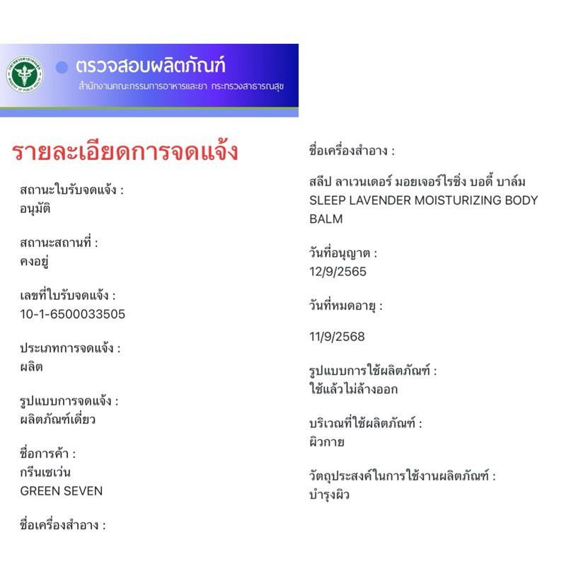 Green Seven บาล์มนวดลาเวนเดอร์ Sleeping Balm Moisturizing Herb Massage Lavender กรีนเซเว่น ✨