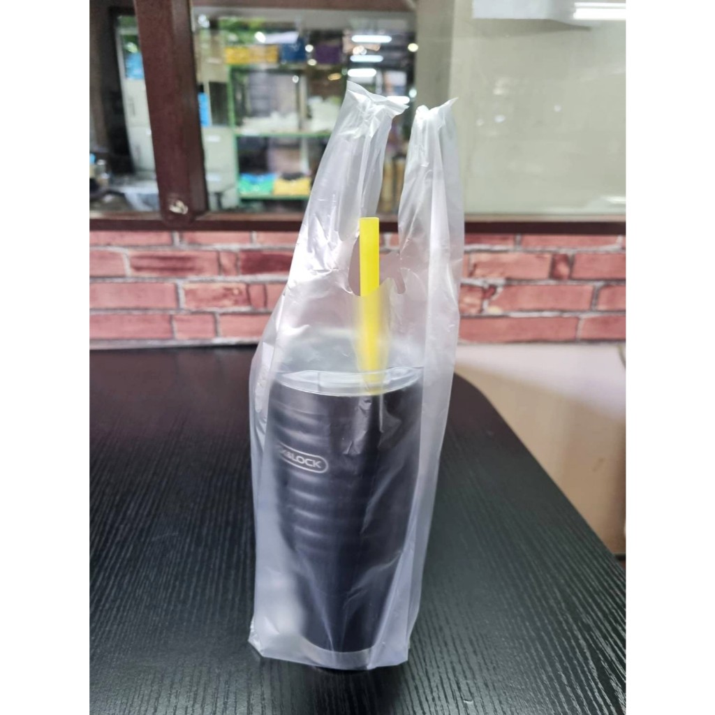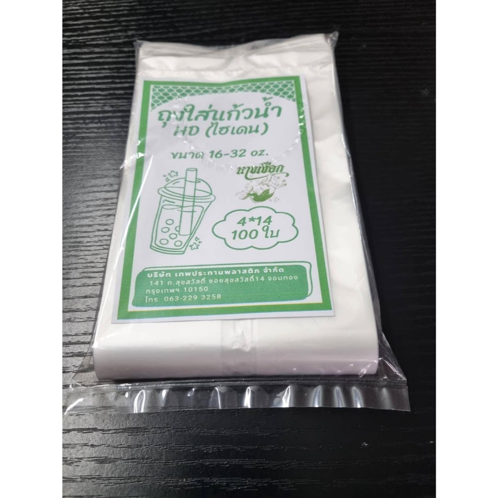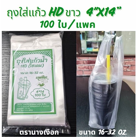 ถุงใส่แก้วน้ำ HD ขาว 4"x14" แพค 100 ใบ ตรานางเงือก ขนาด 16-32 Oz. (พร้อมส่ง)