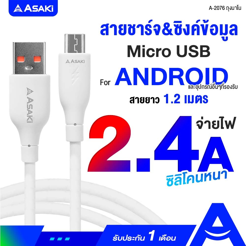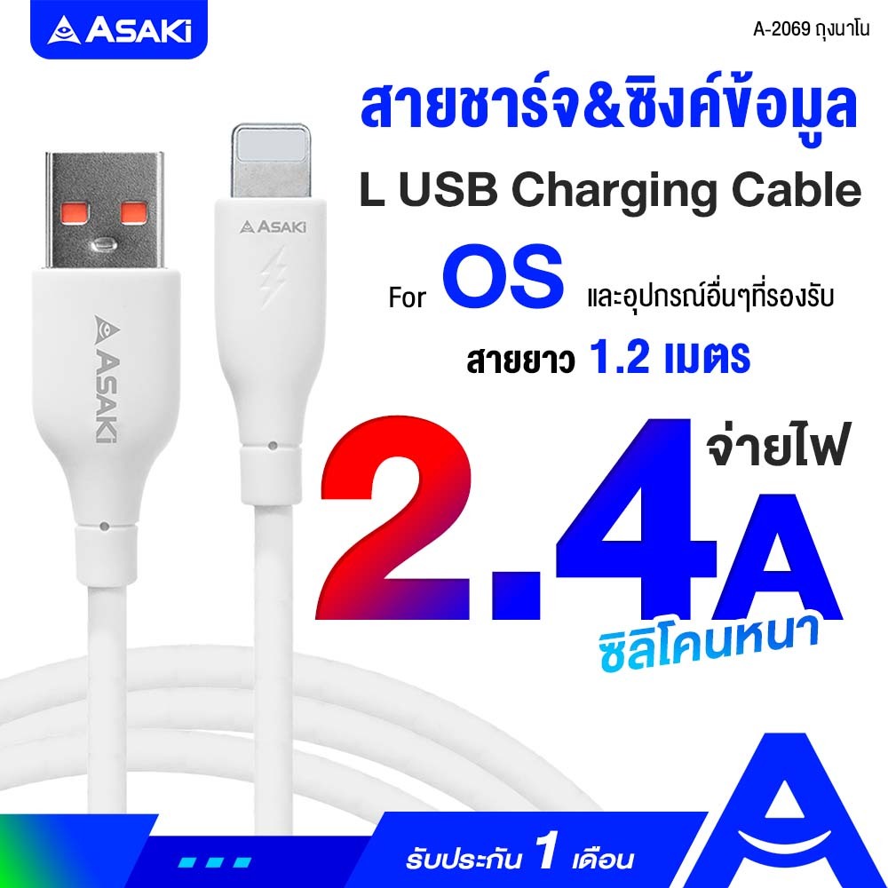 [ราคาพิเศษ] Asaki Cable Charger สายชาร์จ จ่ายไฟ 2.4A ยาว 1.2 เมตร รุ่น A-2076/A-2069/A-2318 (คละลาย) - ประกัน 1 เดือน